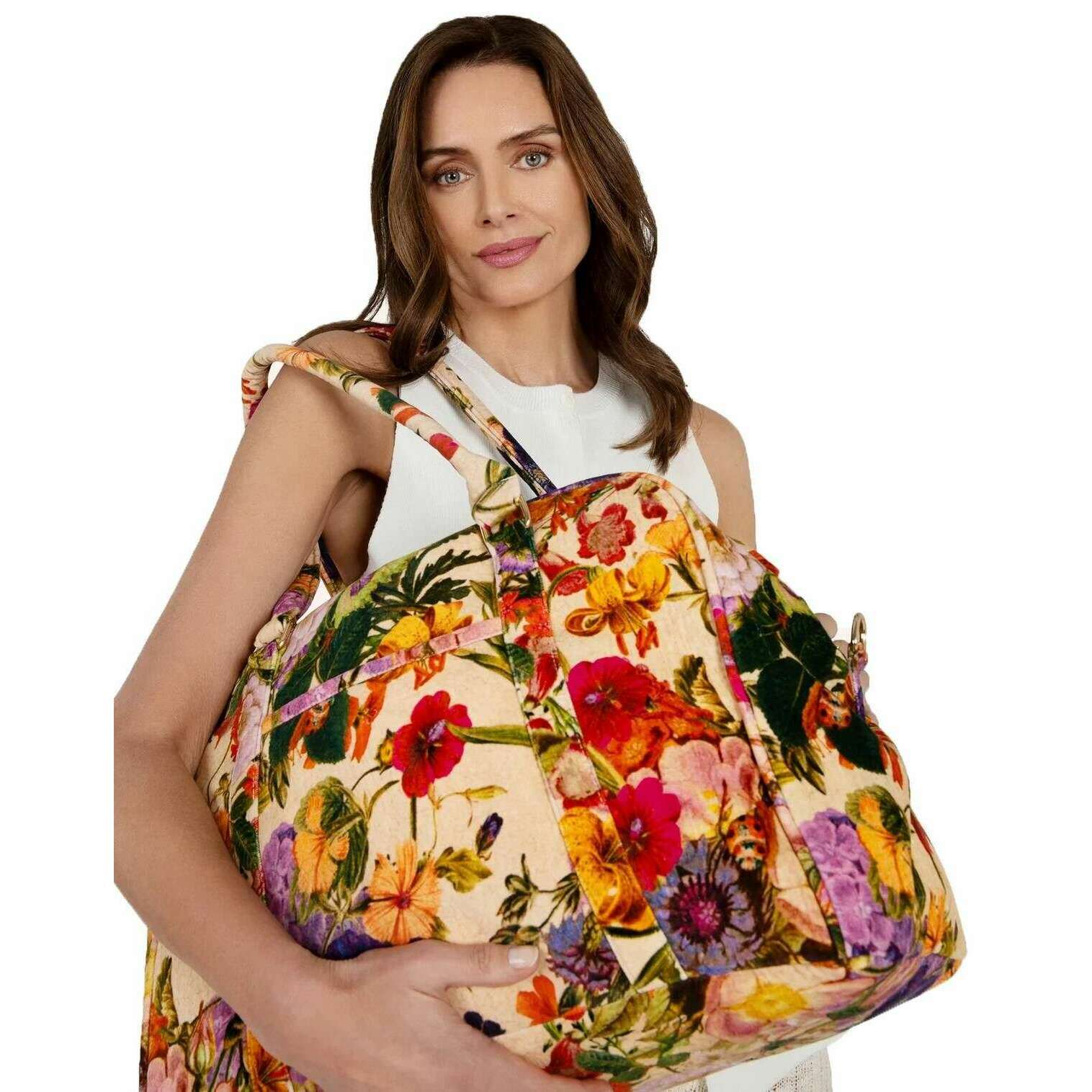Brought to you by the brand Powder, this cream women's posy luxe weekender bag is made from 100% cotton velvet . It measures 42cm(height) x 31cm(width) x 18cm(depth). All the bags come complete with powder tags. The Powder Posy Luxe Weekender Bag - Cream is a practical and diverse bag perfect for weekends away or travelling. The stunning design adds timeless flair, and the twin carry handles and long adjustable shoulder strap make it a comfortable carry. This piece offers optimal storage with its large main compartment and exterior pocket for all of your smaller essentials.