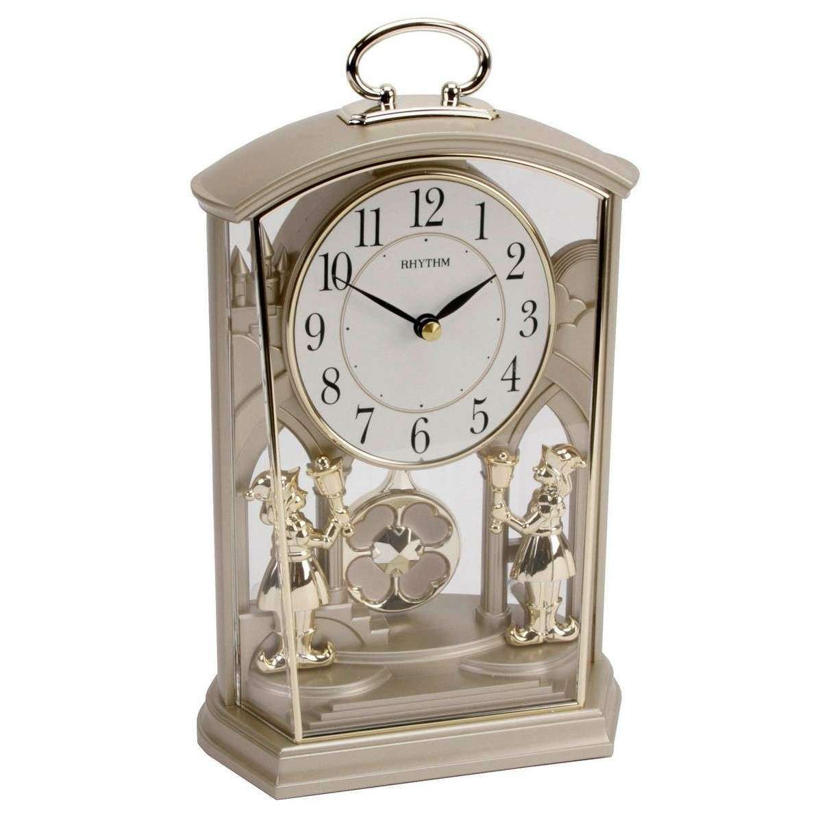 Brought to you by the brand Rhythm, this gold unisex two tone carriage mantel clock is made from plastic. It measures 23cm(height) x 14cm(width) x 8.5cm(depth). All the clocks come complete with rhythm packaging. The Rhythm Two Tone Carriage Mantel Clock - Gold features an ornate design with Rhythm’s silent ‘comfort swing’ pendulum and sweet little elfin footmen on either side. The clock features a quartz movement with an arabic dial and black sword hands. Would be the perfect additional to any mantel piece. Requires 2 x AA batteries.