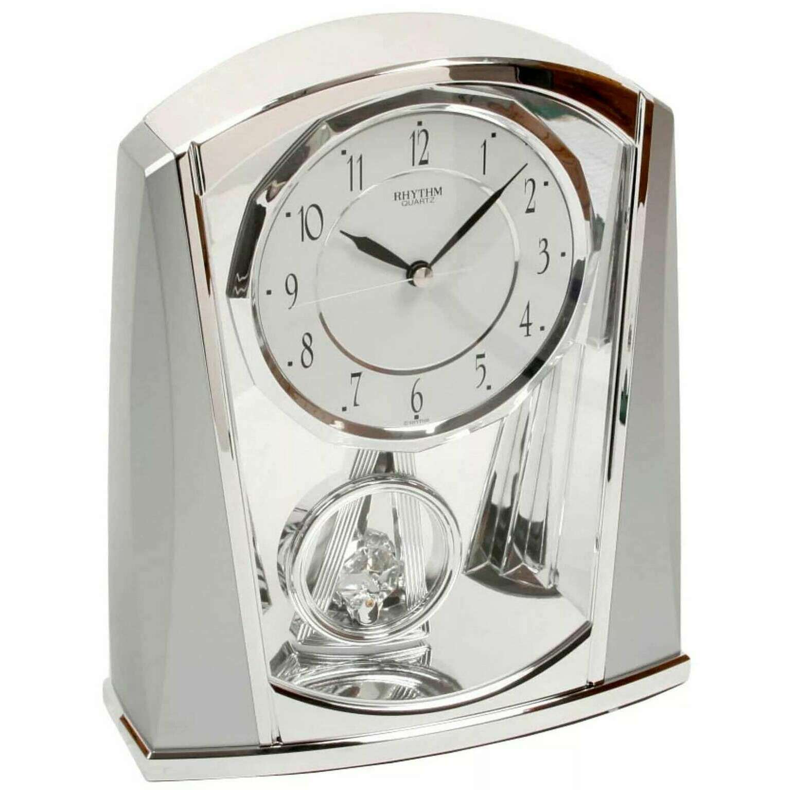 Rhythm Wedge Sides Pendulum Cont Mantel Clock - Chrome