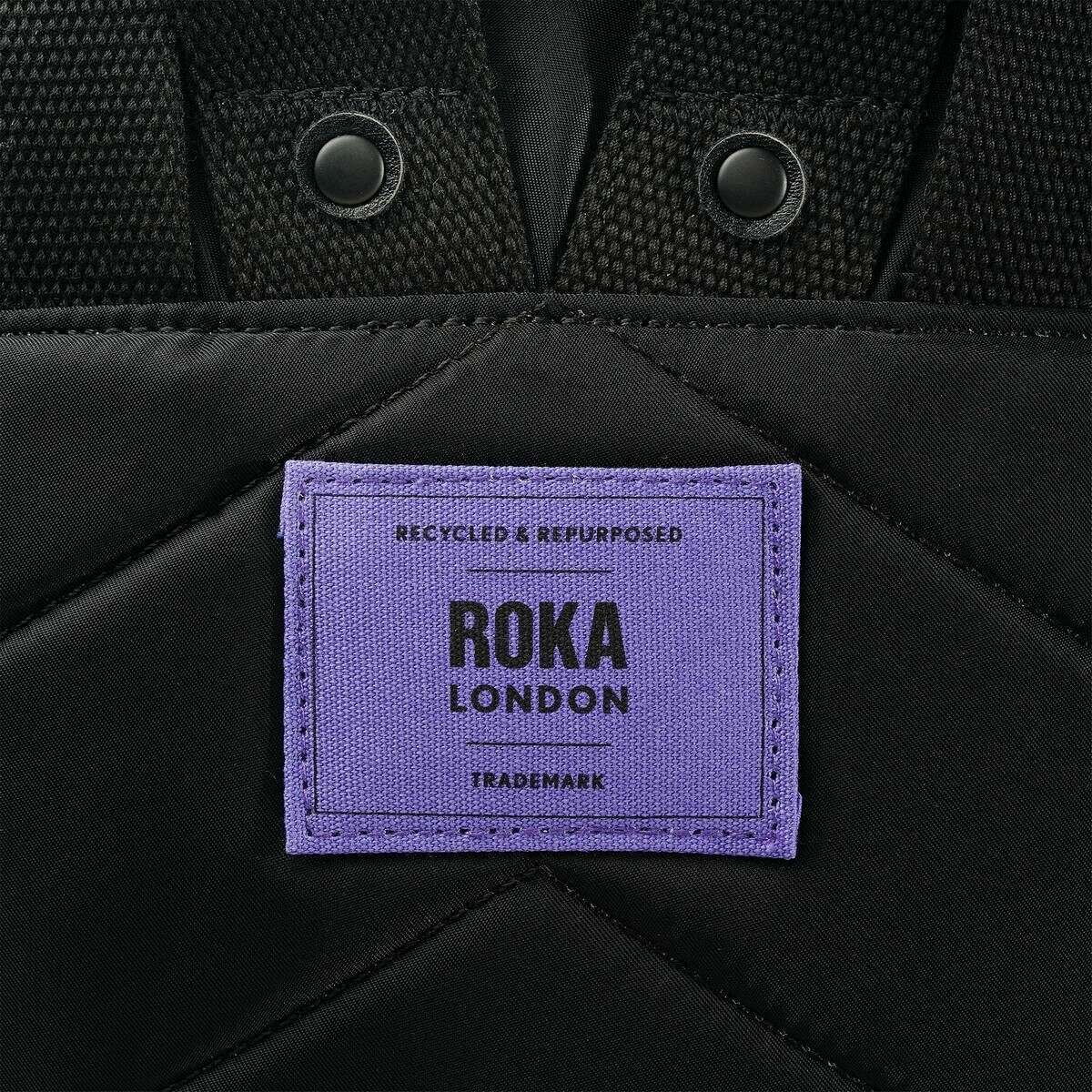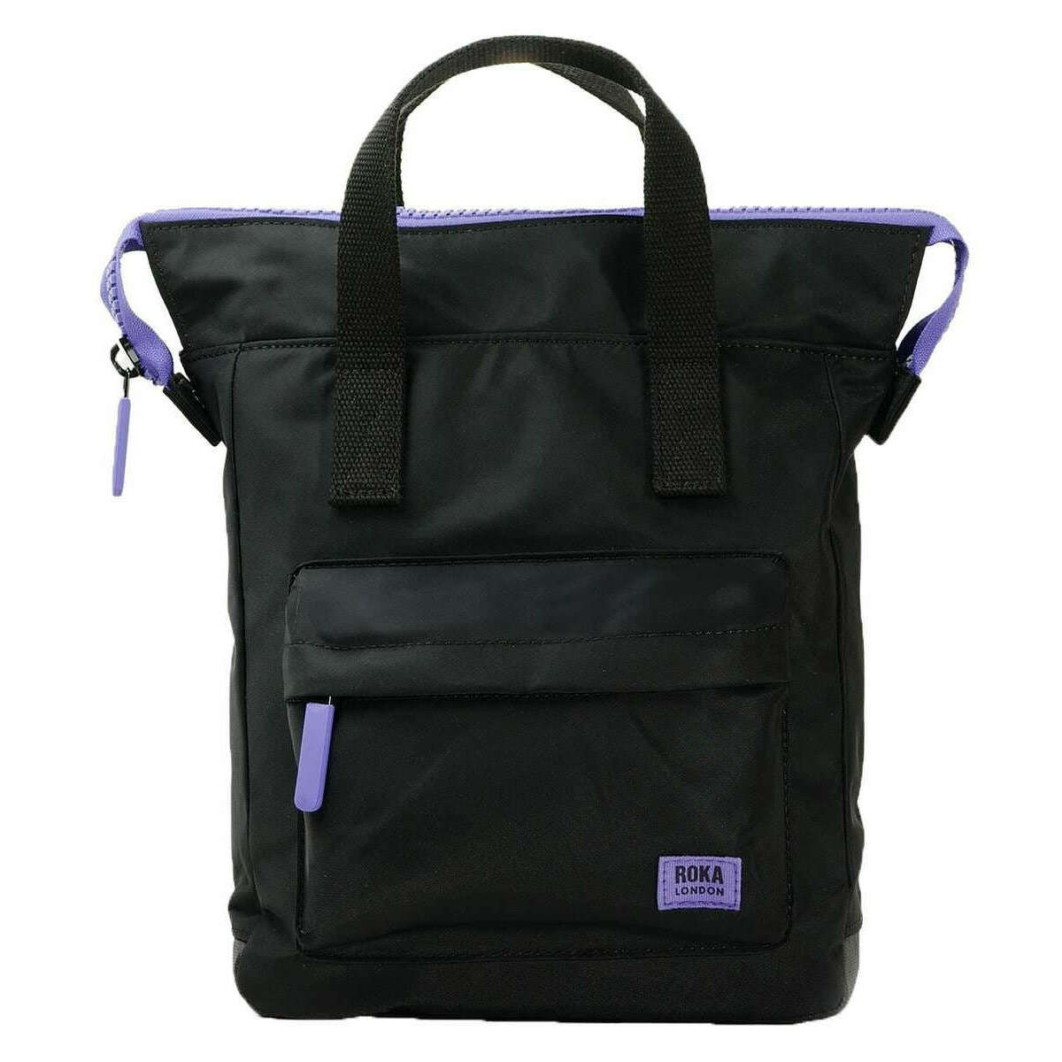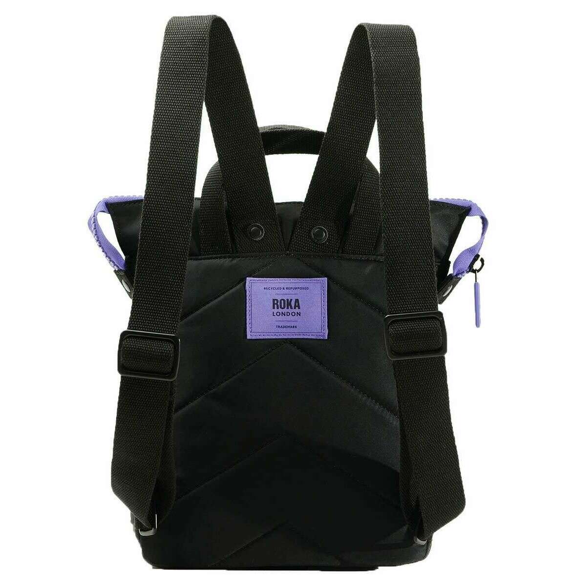 Roka Bantry B Small All Black Recycled Nylon Backpack - Black/Simple Purple