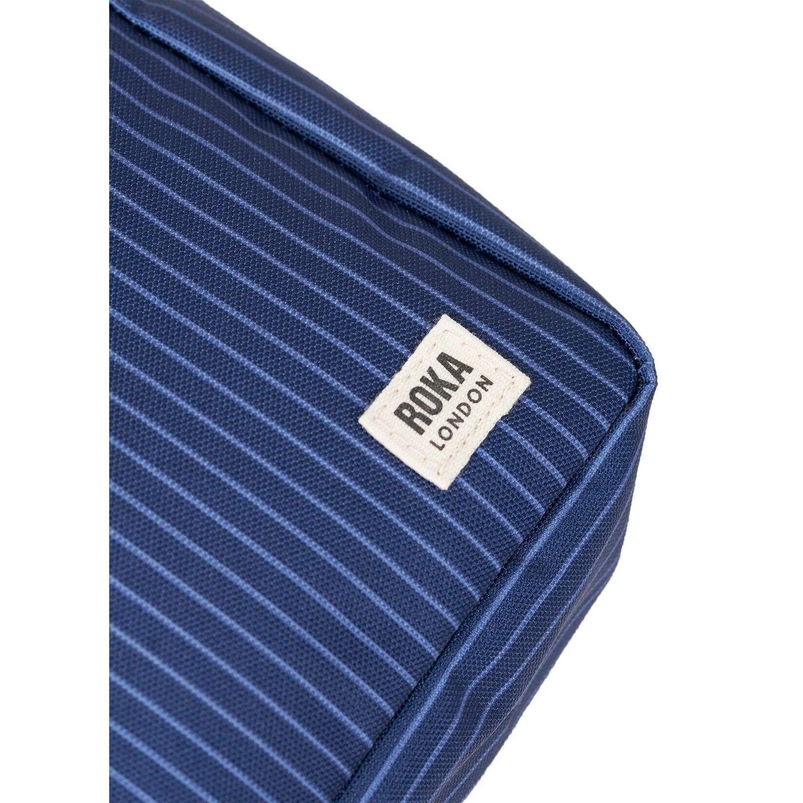 Roka Bond Small Recycled Canvas Crossbody Bag - Dark Denim Pinstripe Blue