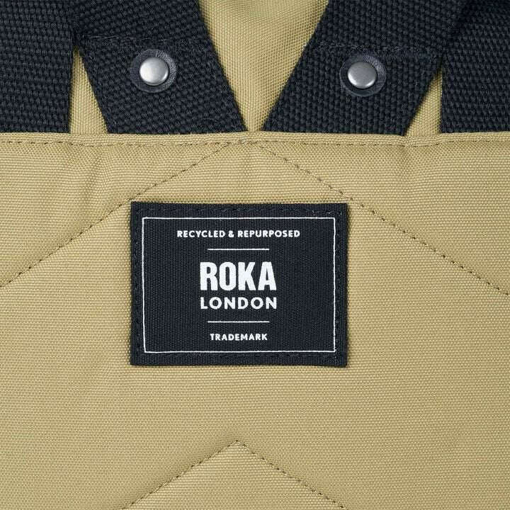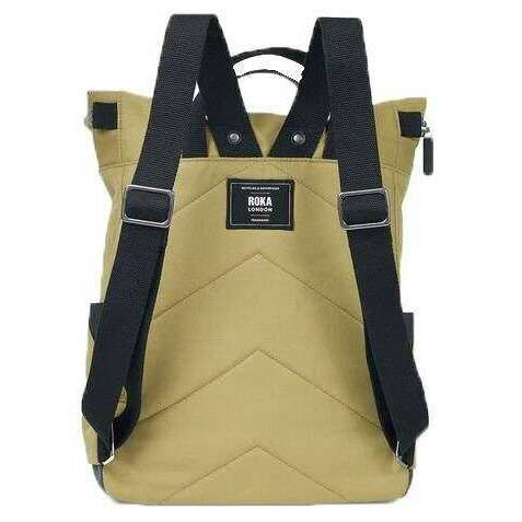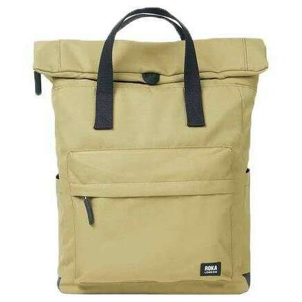 Introducing this unisex canfield b medium black label recycled canvas backpack by Roka, it is manufactured from 100% weather-resistant recycled canvas in a khaki green colour. It measures 42cm(height) x 30cm(width) x 12cm(depth). All the bags come complete with roka packaging. The Roka Canfield B Medium Black Label Recycled Canvas Backpack - Khaki Green is weather-resistant, durable, lightweight and sleek. Excellently crafted from recycled rPET materials, 12 or more plastic bottles are used to create this backpack making it environmentally friendly and sustainable. The roll top design enables the backpack to have a wide mouth opening which is secured with a sturdy zip and magnetic hold, carrying your essentials couldn’t be safer. This bag come equipped with a secret wallet pocket, a padded 15” laptop compartment and two side pockets perfect for water bottles. Fitted with webbed straps you can carry it on your back or at your side using its sturdy handles. The Canfield B is a vegan friendly companion.