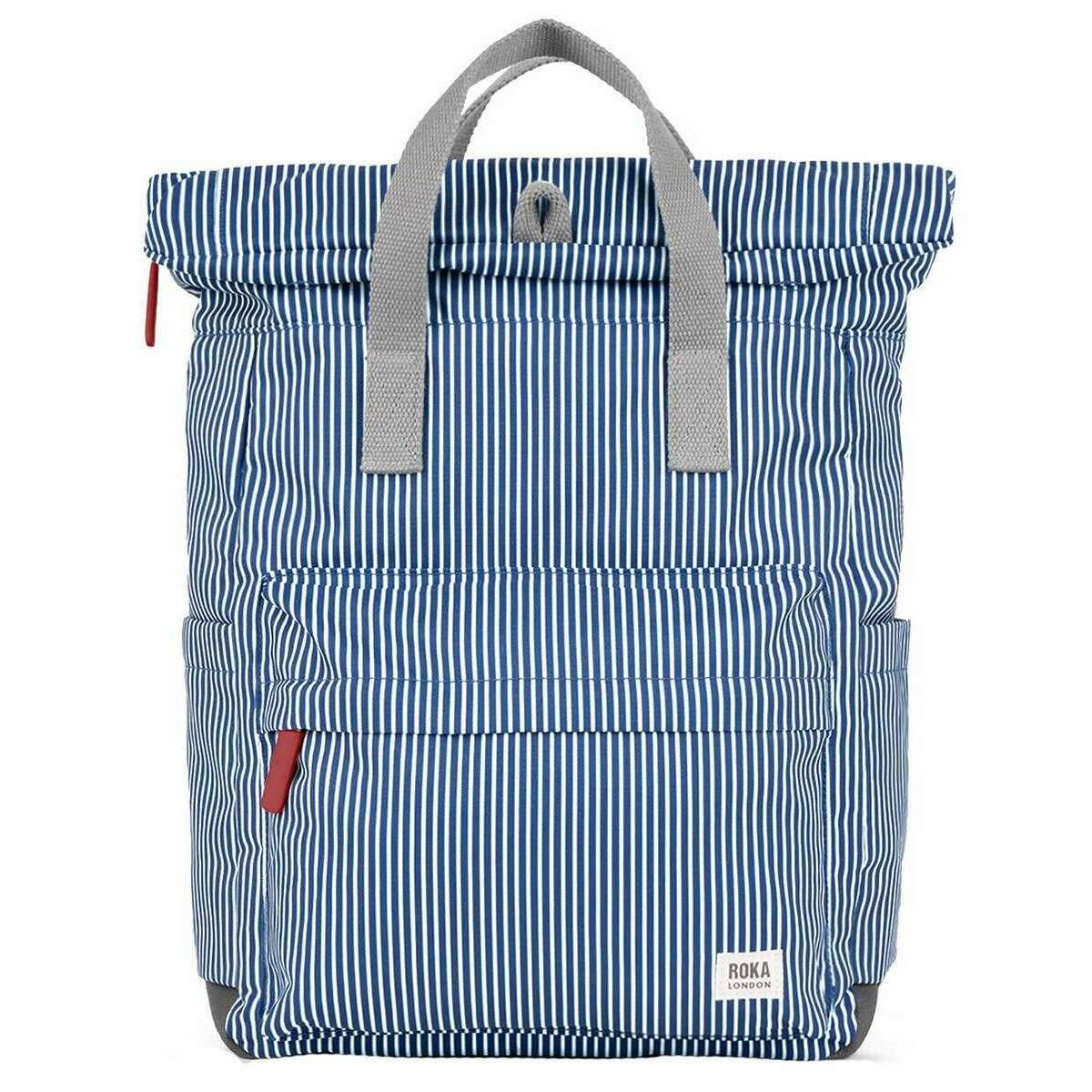 Using blue 100% weather-resistant recycled canvas, this canfield b medium hickory with red recycled canvas backpack by Roka is perfect for men or women and a must have. It measures 42cm(height) x 30cm(width) x 12cm(depth). All the bags come complete with roka packaging. The Roka Canfield B Medium Hickory with Red Recycled Canvas Backpack - Red/Blue/White is weather-resistant, durable, lightweight and sleek features a classic striped design with a pop of red to add a bit of brightness into your days. Excellently crafted from recycled canvas material making it environmentally friendly and sustainable. The roll top design enables the backpack to have a wide mouth opening which is secured with a sturdy zip and magnetic hold, carrying your essentials couldn’t be safer. This bag come equipped with a padded 15” laptop compartment and two side pockets perfect for water bottles. Fitted with webbed straps you can carry it on your back or at your side using its sturdy handles.