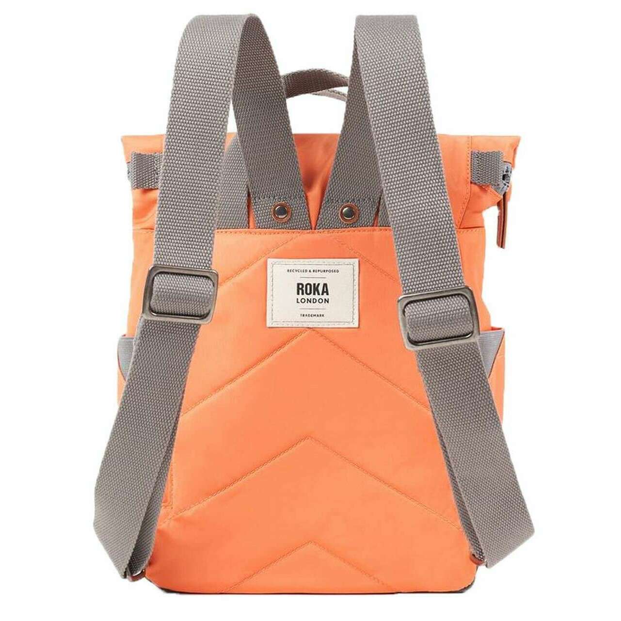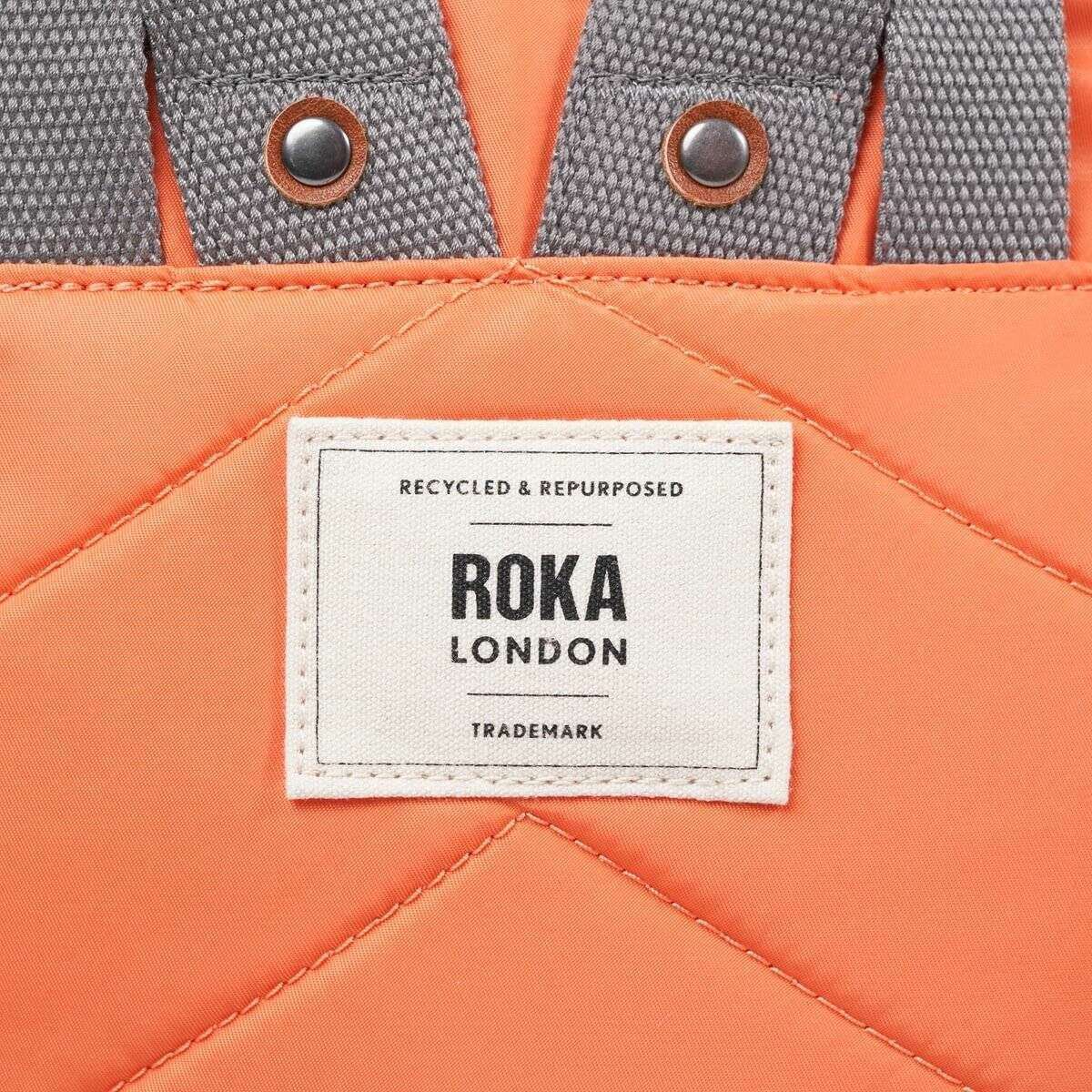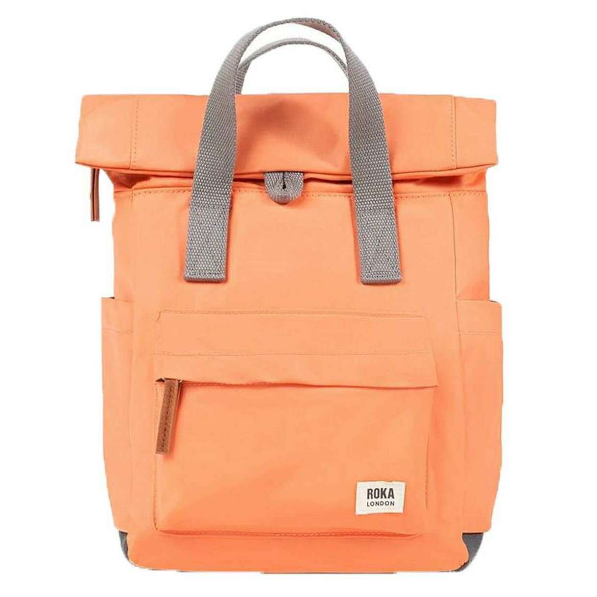 Designer Roka has brought you this unisex 100% recycled nylon (triple-coated) bag using firecracker orange tones. It measures 33cm(height) x 23.5cm(width) x 9.6cm(depth). All the bags come complete with roka packaging. The Roka Canfield B Small Recycled Nylon Backpack - Firecracker Orange is weather-resistant, durable, lightweight and sleek. The roll top design enables the backpack to have a wide mouth opening which is secured with a sturdy zip and magnetic hold, carrying your essentials couldn t be safer. Featuring a secret wallet pocket and a tablet section, this backpack allows you to carry everything you may need on your day-to-day travels. Carry in complete comfort with the adjustable cotton webbing straps or the twin carry handles. Crafted from recycled nylon ensures this bag is vegan friendly and sustainable.