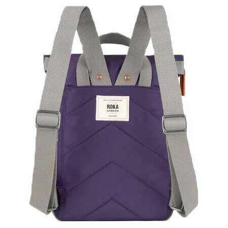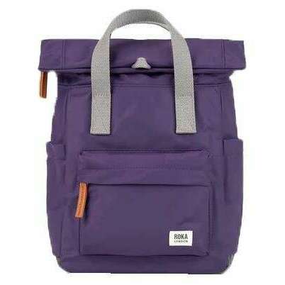 This canfield b small recycled nylon backpack for men or women is fashioned by the brand Roka in a purple colour and is made from 100% weather-resistant recycled nylon. It measures 33cm(height) x 23.5cm(width) x 9.6cm(depth). All the bags come complete with roka packaging. The Roka Canfield B Small Recycled Nylon Backpack - Majestic Purple is weather-resistant, durable, lightweight and sleek. The roll top design enables the backpack to have a wide mouth opening which is secured with a sturdy zip and magnetic hold, carrying your essentials couldn’t be safer. Featuring a secret wallet pocket and a tablet section, this backpack allows you to carry everything you may need on your day-to-day travels. Carry in complete comfort with the adjustable cotton webbing straps or the twin carry handles. 12 or more plastic bottles are used to make the rPET material for this bag so it is environmentally friendly and also completely vegan.