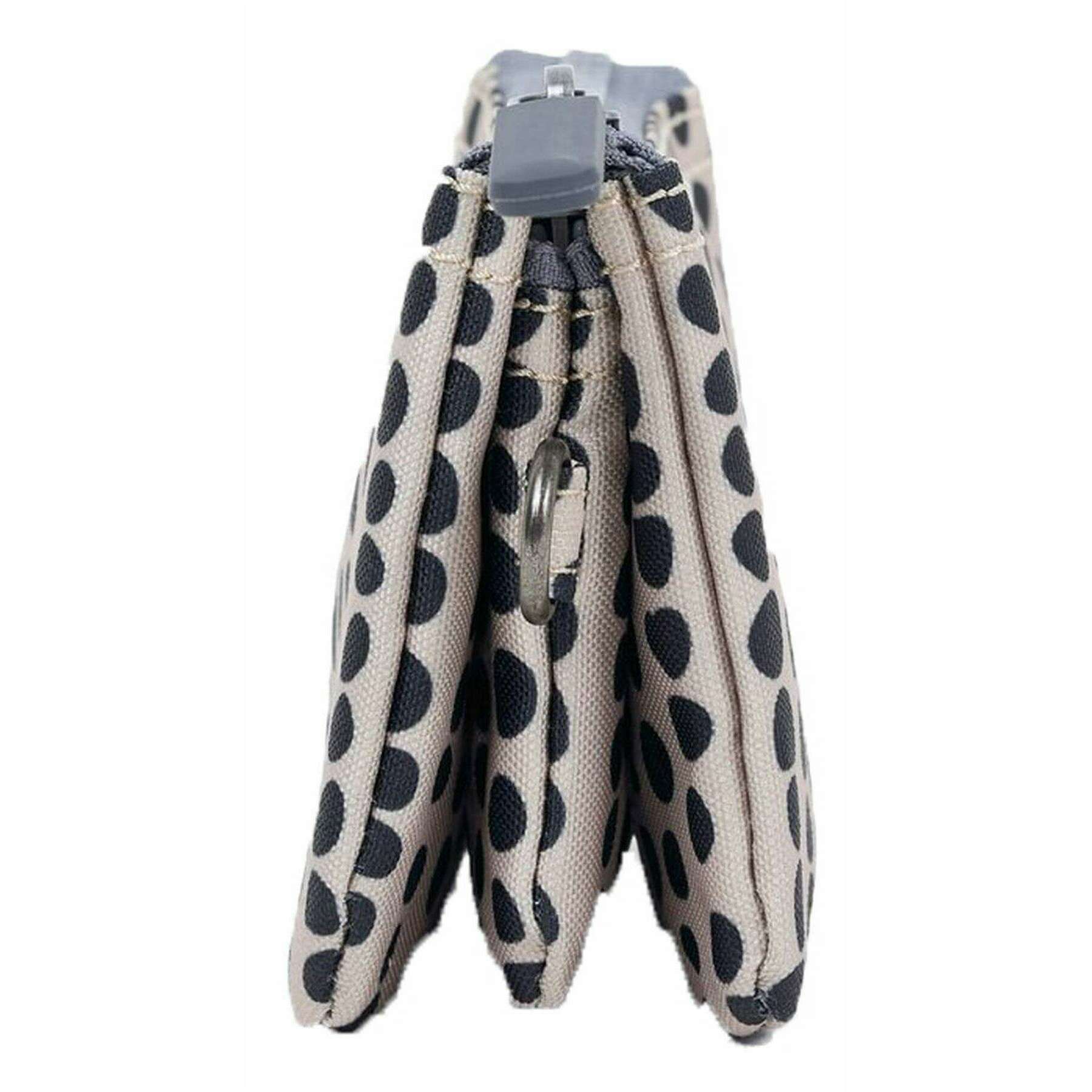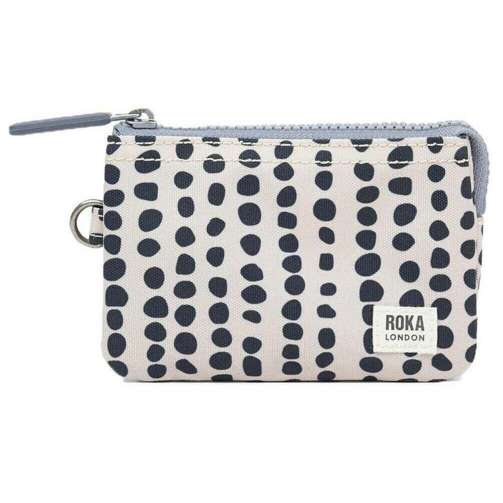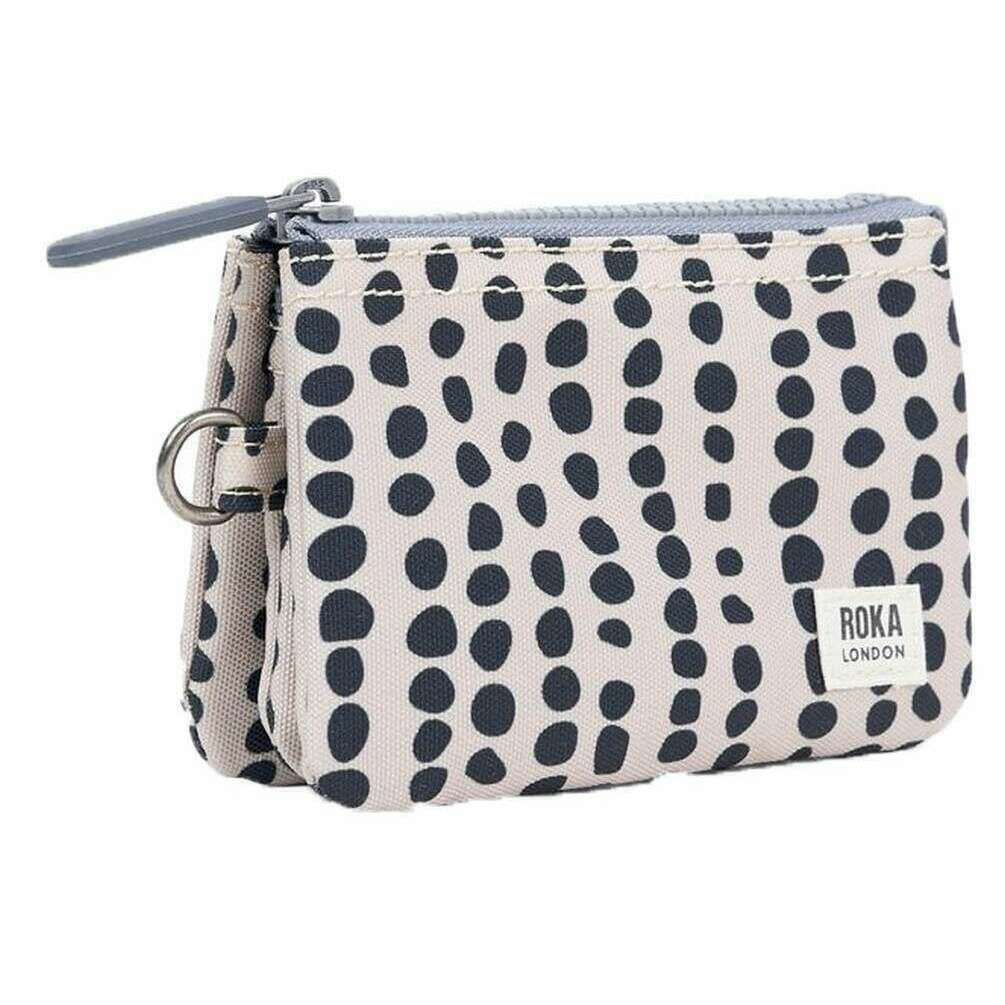 This carnaby small linear dot recycled canvas wallet for men or women is fashioned by the brand Roka in a cream colour and is made from 100% recycled canvas. It measures 9.5cm(height) x 14cm(width) x 2.8cm(depth). All the wallets come complete with roka packaging. The Roka Carnaby Small Linear Dot Recycled Canvas Wallet - Cream/Black features a bold, monochrome design of linear dots against a cream backdrop for a playful twist! This wallet is environmentally friendly due to the recycled canvas material which is also water-resistant and designed to hold your cards, coins and notes with no fear of damage. It has three sections for great organisation which is connected by one main zip for a secure fastening. Whether you want a stylish wallet for work, travel, or daily errands, there s a Linear Dot variant that delivers both form and function.