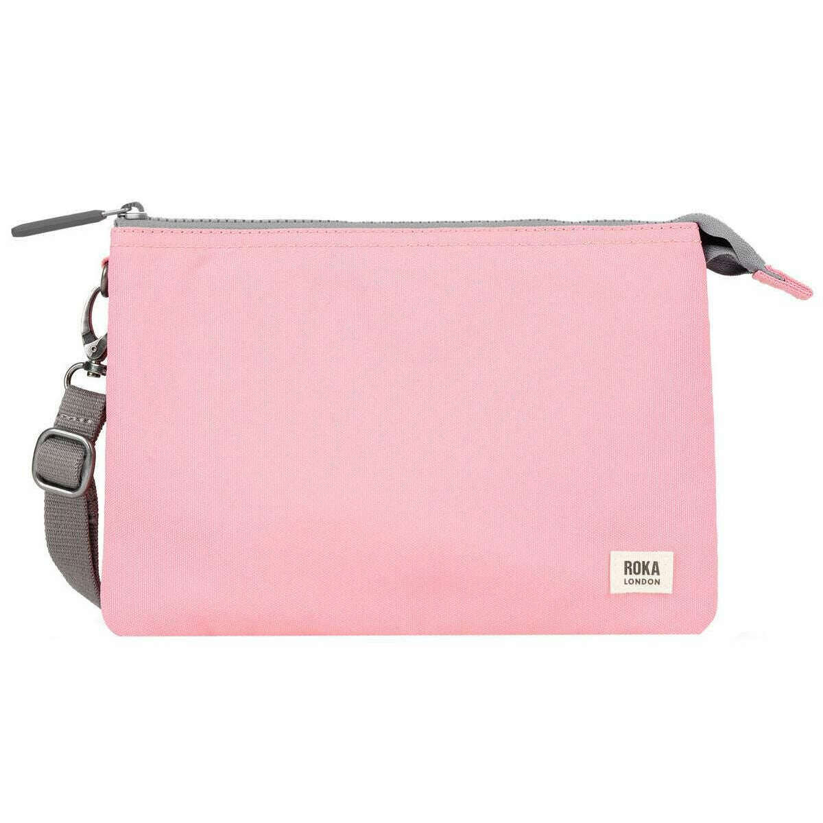 This unisex carnaby xl recycled canvas crossbody bag by the brand Roka is made from 100% weather resistant recycled canvas (triple coated) and is showcased in pink. It measures 17cm(height) x 25cm(width) x 3cm(depth). All the bags come complete with roka packaging. The Roka Carnaby XL Recycled Canvas Crossbody Bag - Rose Pink features a simple and neat design to offer practicality and organisation when it comes to your day-to-day essentials. It has three separate compartments, each with various pockets and slots for cards, coins and notes as well as being big enough to store most mobile phones. It is the perfect accessory that allows you to carry your wallet as a bag with a little extra room for a few more bits and bobs. It is fitted with adjustable webbed strap and is designed to be durable and lightweight as well as sustainable. The Carnaby XL is an all-round winner.