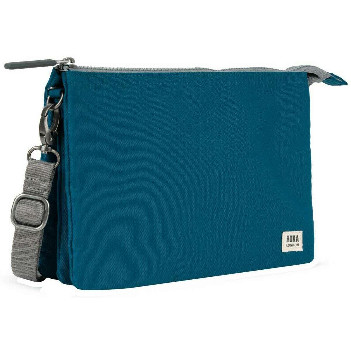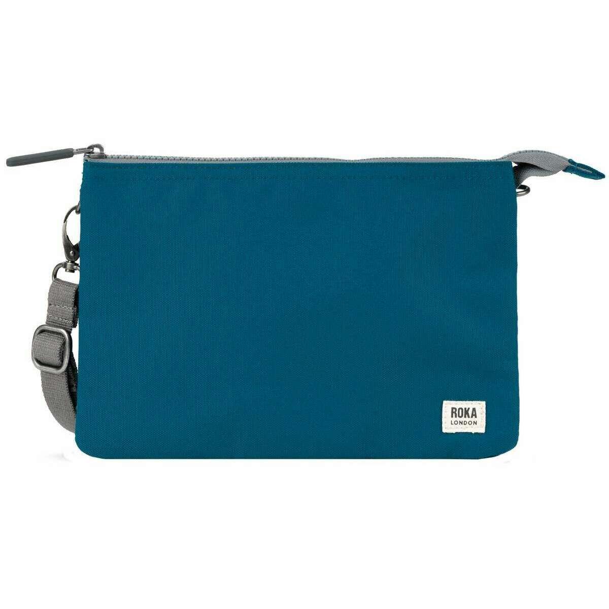 Perfect for men or women is this Roka sapphire blue carnaby xl recycled canvas crossbody bag, it is also made from 100% weather resistant recycled canvas. It measures 17cm(height) x 25cm(width) x 3cm(depth). It is recommended to clean with a wet sponge or damp cloth to keep this bag in good condition. All the bags come complete with roka packaging. The Roka Carnaby XL Recycled Canvas Crossbody Bag - Sapphire Blue offers practicality and organisation when it comes to your day-to-day essentials with its weather resistant recycled canvas material. It has three separate compartments, each with various pockets and slots for cards, coins and notes as well as being big enough to store most mobile phones. It is the perfect accessory that allows you to carry your wallet as a bag with a little extra room for a few more bits and bobs. It is fitted with adjustable webbed strap and is designed to be durable and lightweight as well as sustainable. The Carnaby XL is an all-round winner.