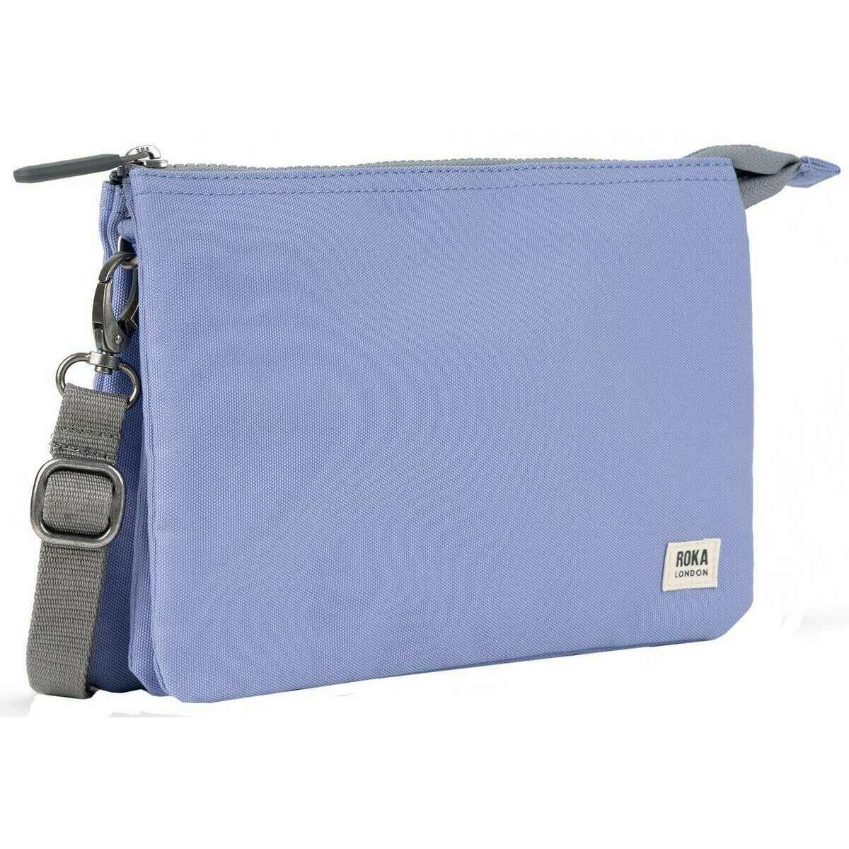 Manufactured from 100% weather resistant recycled canvas is this thistle purple unisex carnaby xl recycled canvas crossbody bag by the designer Roka. It measures 17cm(height) x 25cm(width) x 3cm(depth). It is recommended to clean with a wet sponge or damp cloth to keep this bag in good condition. All the bags come complete with roka packaging. The Roka Carnaby XL Recycled Canvas Crossbody Bag - Thistle Purple offers practicality and organisation when it comes to your day-to-day essentials with its weather resistant recycled canvas material. It has three separate compartments, each with various pockets and slots for cards, coins and notes as well as being big enough to store most mobile phones. It is the perfect accessory that allows you to carry your wallet as a bag with a little extra room for a few more bits and bobs. It is fitted with adjustable webbed strap and is designed to be durable and lightweight as well as sustainable. The Carnaby XL is an all-round winner.