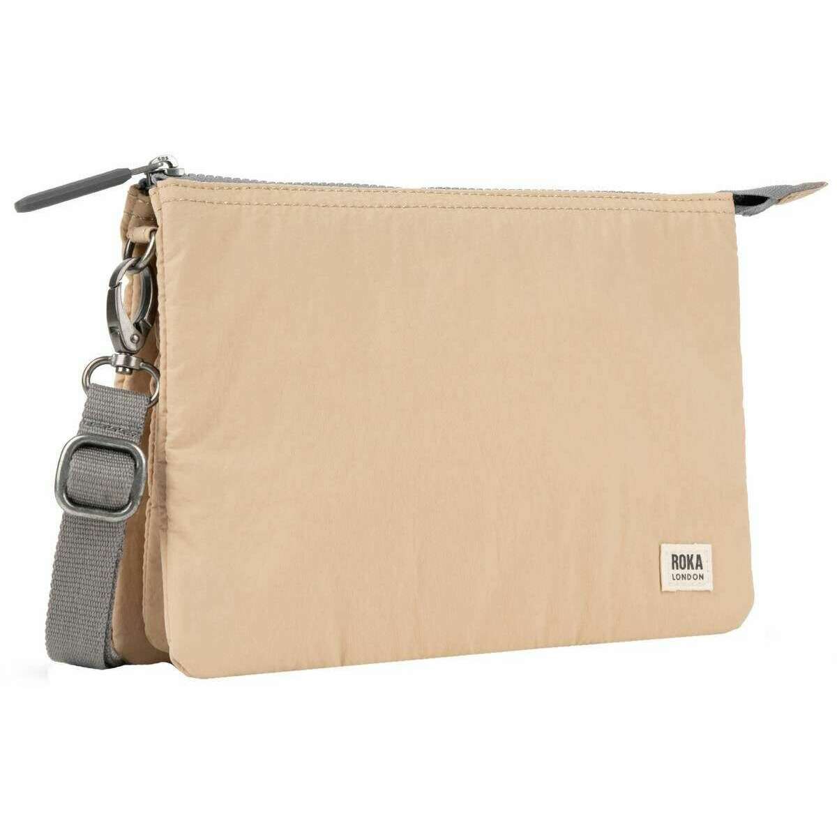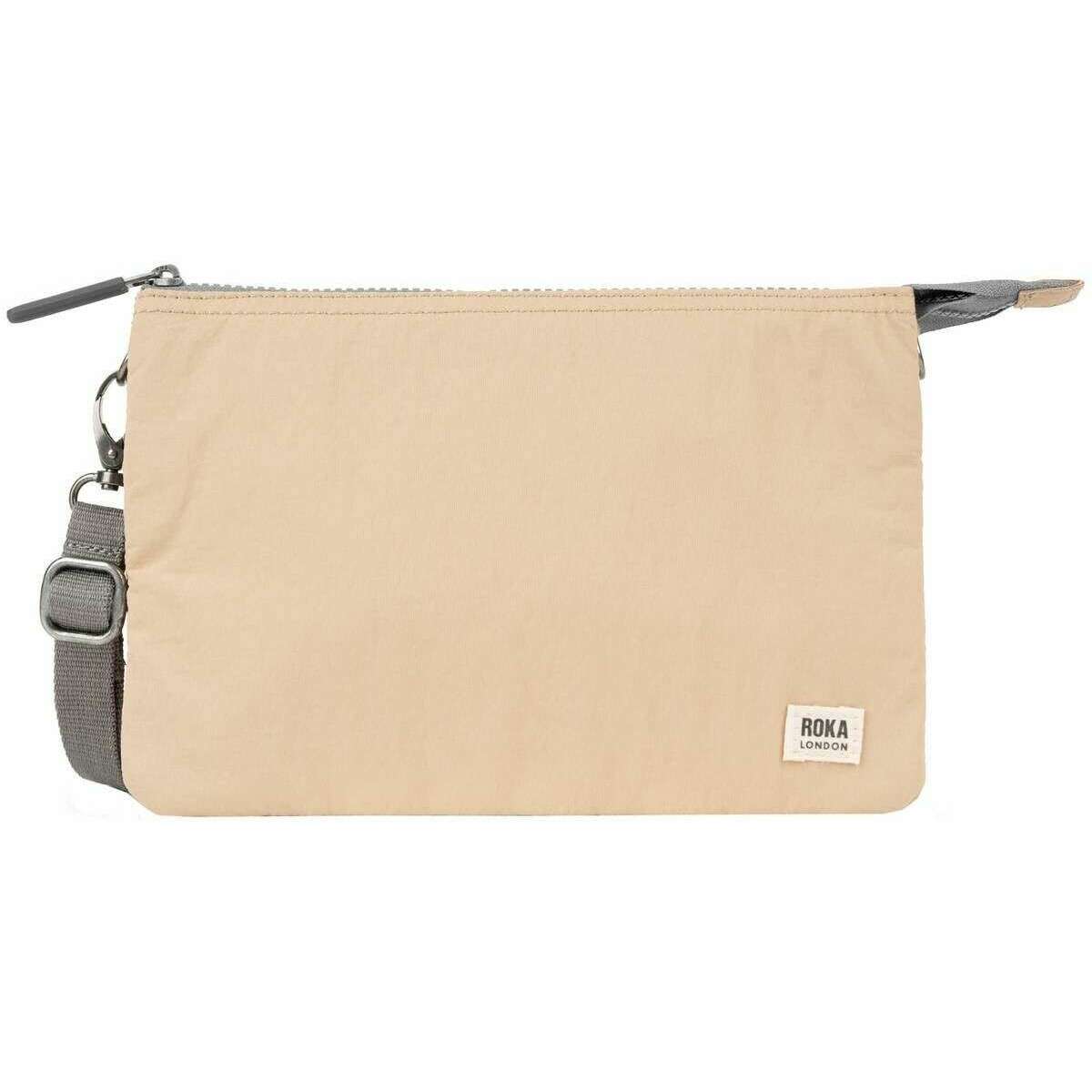 Perfect for men or women is this Roka biscotti cream carnaby xl talson crossbody bag, it is also made from 100% weather-resistant taslon. It measures 17cm(height) x 25cm(width) x 3cm(depth). It is recommended to clean with a wet sponge or damp cloth to keep this bag in good condition. All the bags come complete with roka packaging. The Roka Carnaby XL Talson Crossbody Bag - Biscotti Cream offers practicality and organisation when it comes to your day-to-day essentials with its weather resistant talon material. It has three separate compartments, each with various pockets and slots for cards, coins and notes as well as being big enough to store most mobile phones. It is the perfect accessory that allows you to carry your wallet as a bag with a little extra room for a few more bits and bobs. It is fitted with adjustable webbed strap and is designed to be durable and lightweight as well as sustainable. The Carnaby XL is an all-round winner.