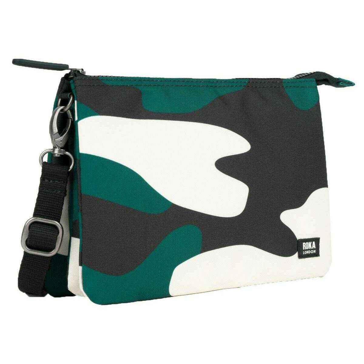 Introducing this unisex carnaby xl urban rose camo recycled canvas crossbody bag by Roka, it is manufactured from 100% weather resistant recycled canvas (triple coated) in a green/white/black colour. It measures 25cm(height) x 17cm(width) x 3cm(depth). Also the green/white/black bag is designed in a camouflage pattern, All the bags come complete with roka packaging. The Roka Carnaby XL Urban Rose Camo Recycled Canvas Crossbody Bag - Green/White/Black features a simple and neat design to offer practicality and organisation when it comes to your day-to-day essentials. It has three separate compartments, each with various pockets and slots for cards, coins and notes as well as being big enough to store most mobile phones. It is the perfect accessory that allows you to carry your wallet as a bag with a little extra room for a few more bits and bobs. It is fitted with adjustable webbed strap and is designed to be durable and lightweight as well as sustainable. The Carnaby XL is an all-round winner.
