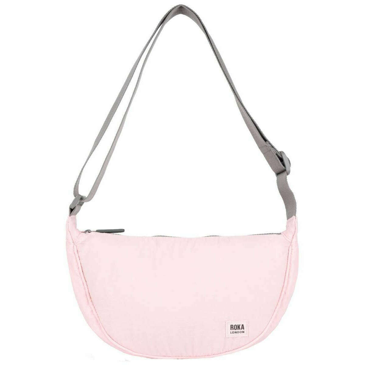 Manufactured from 100% weather-resistant taslon is this seashell pink unisex farringdon taslon slouchy bag by the designer Roka. It measures 16cm(height) x 27.9cm(width) x 8.9cm(depth). It is recommended to clean with a wet sponge or damp cloth to keep this bag in good condition. All the bags come complete with roka packaging. The Roka Farringdon Taslon Slouchy Bag - Seashell Pink is a sustainable fashion icon providing versatility every day. Delicately made from recycled Taslon, which is a fibre created from the combination of nylon and polyester, it gives that slouchy feel so is perfect for cosying into your body. It is vegan friendly and weather resistant, featuring zipped compartments to help organise the everyday essentials like your keys, purse and mobile phone which can all be secured with its zip closure. Its adjustable straps ensure you can find a comfortable carrying length so you can go about your day with ease.