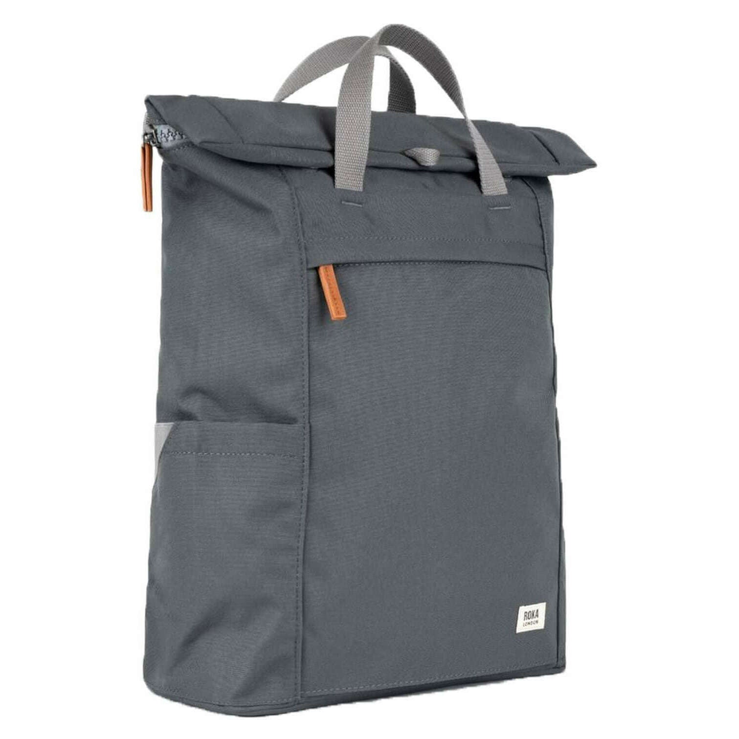 Perfect for men or women is this Roka faded black finchley a large recycled canvas backpack, it is also made from 100% recycled canvas (triple-coated). It measures 45cm(height) x 32cm(width) x 14.5cm(depth). All the bags come complete with roka packaging. The Roka Finchley A Large Recycled Canvas Backpack - Faded Black holds and organises an impressive number of items, all within the roll-top design. Water-resistant and crafted from recycled materials, this backpack is sustainable, vegan and kind to the environment. There is a lightly padded laptop pocket that will fit your devices up to 17" and the extra storage space holds a change of clothes, water bottle, snacks and more! The zip pocket on the front is perfect for things you need to access quickly whilst on the move. The back padding and cotton straps provide comfort to the back and shoulders for comfortable carrying, perfect for everyday use.
