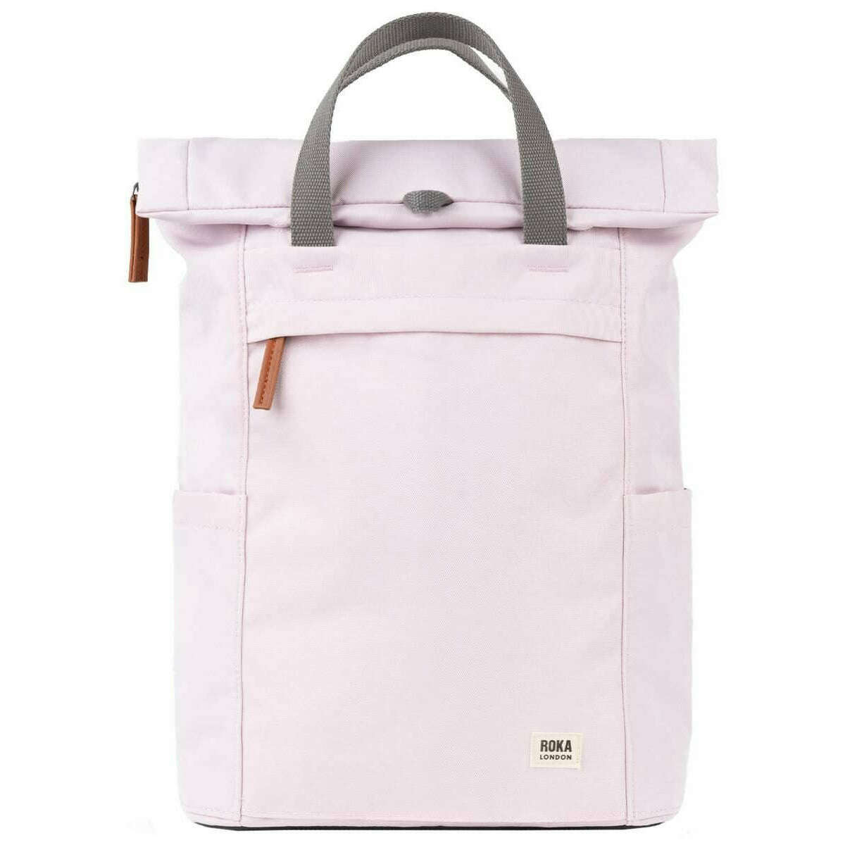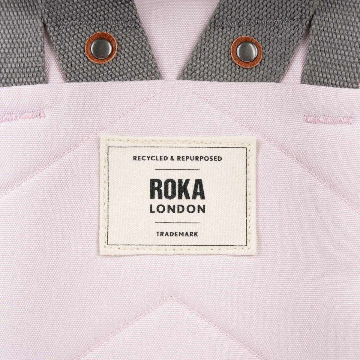 This unisex finchley a medium recycled canvas backpack has been made from 100% weather-resistant recycled canvas, featured in a pink colour and is from the brand Roka. It measures 42cm(height) x 28cm(width) x 13cm(depth). It is recommended to clean with a wet sponge or damp cloth to keep this bag in good condition. All the bags come complete with roka packaging. The Roka Finchley A Medium Recycled Canvas Backpack - Transcendent Pink holds and organises an impressive number of items, all within the roll-top design. Water-resistant and crafted from recycled materials, this backpack is sustainable, vegan and kind to the environment. There is a lightly padded laptop pocket that will fit your devices up to 17" and the extra storage space holds a change of clothes, water bottle, snacks and more! The zip pocket on the front is perfect for things you need to access quickly whilst on the move. The back padding and cotton straps provide comfort to the back and shoulders for comfortable carrying, perfect for everyday use.