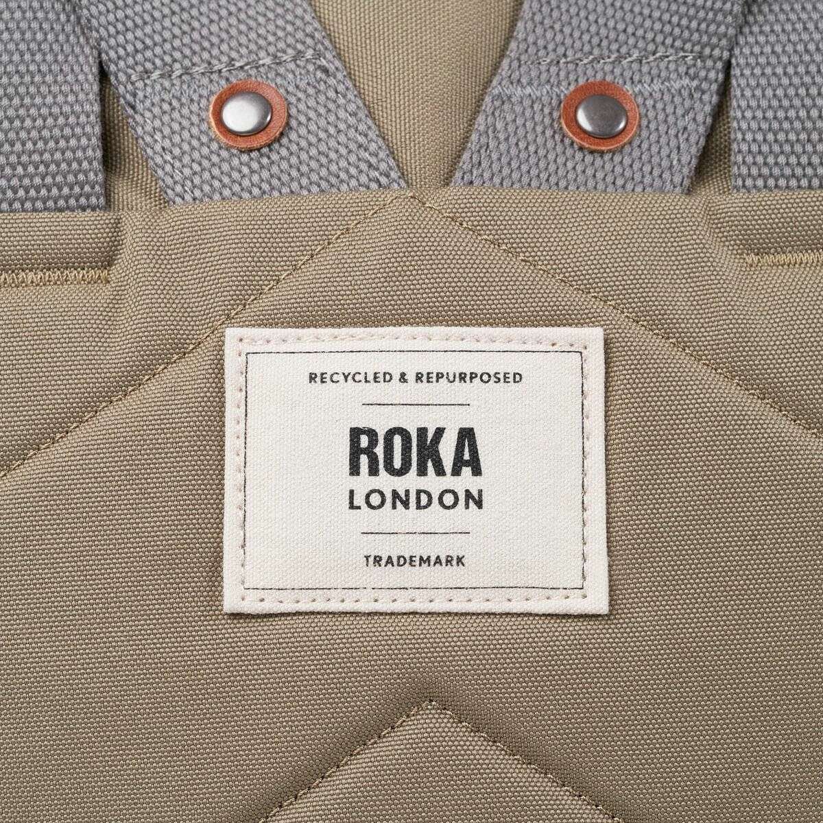 Manufactured from 100% recycled canvas (triple-coated) is this taupe beige unisex finchley a small recycled canvas backpack by the designer Roka. It measures 34cm(height) x 25cm(width) x 12cm(depth). All the bags come complete with roka packaging. The Roka Finchley A Small Recycled Canvas Backpack - Taupe Beige will keep your essentials organised throughout the day as it features a tablet sleeve, inside pockets and water bottle pockets. There truly is ample storage for all your necessities. The roll top design and large zipped front compartment will keep everything secure whilst on the move. The comfortable straps offer you extra comfort and stability, while the water-resistant durable design with fully padded back panel provides comfort on the go. Made from recycled material, this bag has matte look and feel which helps to evoke the canvas. This bag is completely vegan making it ideal for everyday use.