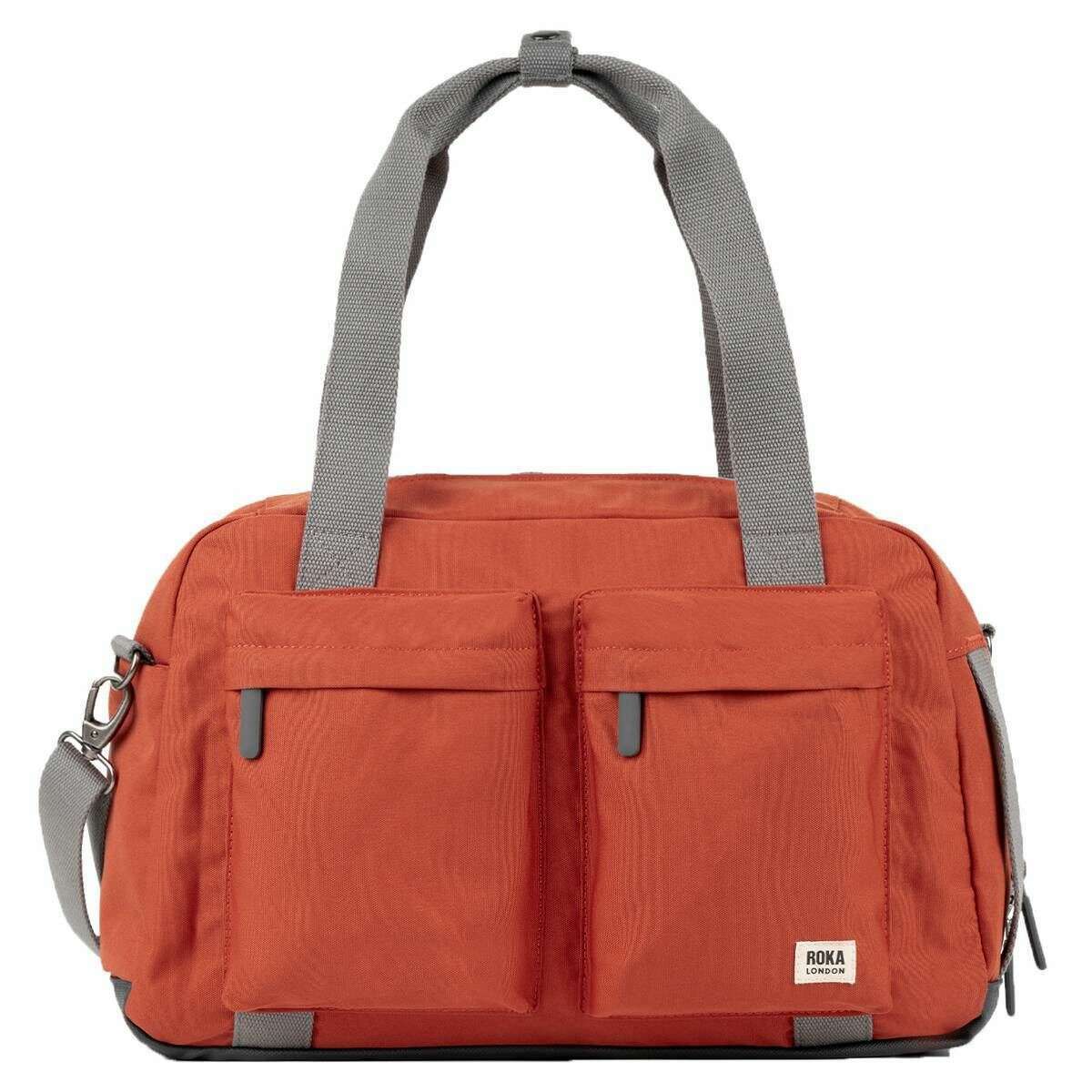 Designer Roka has brought you this unisex 100% weather-resistant recycled canvas (triple coated) bag using roobios red tones. It measures 27cm(height) x 43cm(width) x 16cm(depth). All the bags come complete with roka packaging. The Roka Gatwick Small Recycled Canvas Duffle Bag - Roobios Red is the ultimate travel companion as it features multi-functional straps and an array of pockets, keeping all your belongings organised on the move. Named after one of the busiest airports in the UK, it has been crafted with precision and style. Expertly crafted from recycled materials ensures this duffle is vegan and environmentally friendly as well has being water-resistant. Being a small carry-on size it is ideal for those shorter trips, and it features top handles, detachable shoulder strap, side grab handle, trolley sleeve, a waterproof pocket, padded tablet compartment that is accessible from the outside and one large main compartment. The perfect bag for stylish travel.