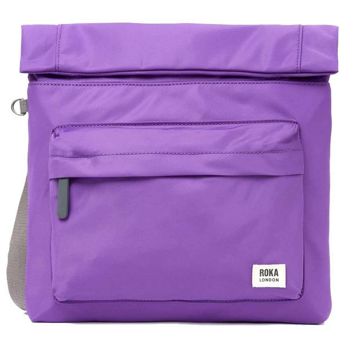 This stratford b large recycled nylon crossbody bag for men or women is fashioned by the brand Roka in a purple colour and is made from 100% recycled nylon. It measures 30cm(height) x 30cm(width) x 6cm(depth). All the bags come complete with roka packaging. The Roka Stratford B Large Recycled Nylon Crossbody Bag - Fresh Purple has storage to carry your phone, keys and wallet. This stylish purple bag also contains a back and front pocket for extra storage. Featuring a magnetic clasp to close the bag to make sure your belongings are safe. This product is also 100% safe for the environment because it s recycled from pre-consumer waste from fibres, unused garments and repurposed material and offcuts. It s also weather-resistant meaning you don t have to worry about your belongings getting wet and it s vegan friendly.