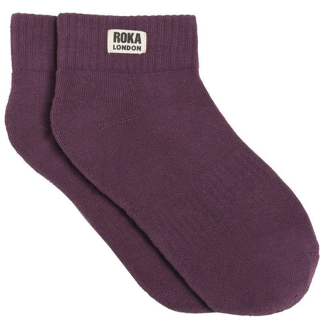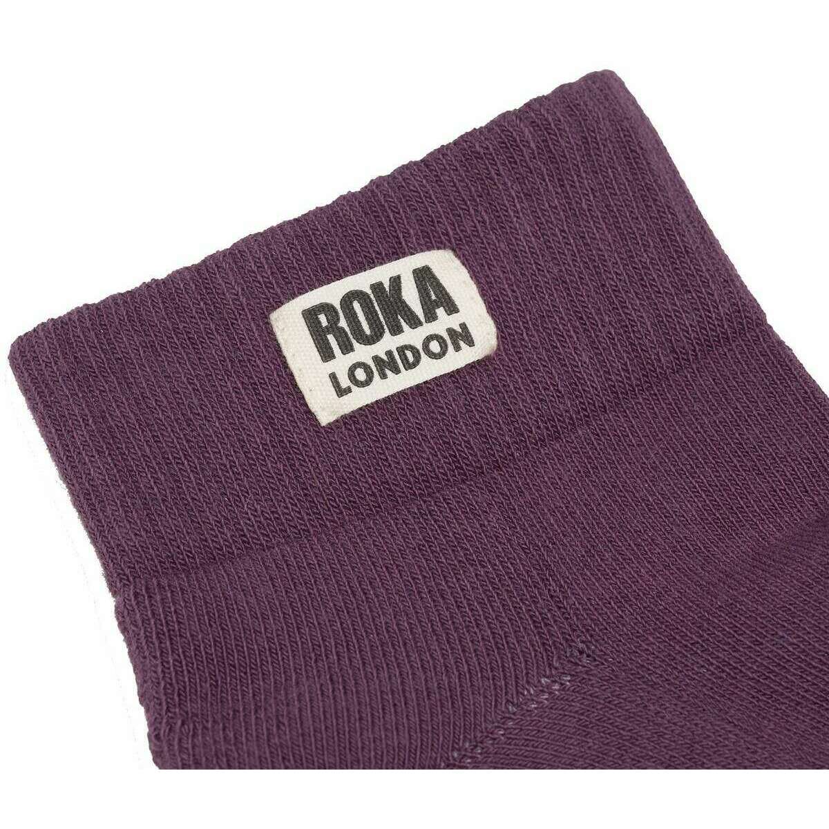 These unisex wembley socks have been made from 82% organic cotton, 16% recycled nylon and 2% elastane, featured in a purple colour and are from the brand Roka. Also the berry purple socks are designed in a plain pattern, All the socks come complete with roka tags. The Roka Wembley Socks - Berry Purple are a must-have to add to your collection. The organic cotton blend ensures your feet are kept snug and comfortable all day, whilst the beautiful bright colour keeps you looking stylish and trendy. Completing this pair is the Roka London logo stitched on the top side of each sock to give that staple look.