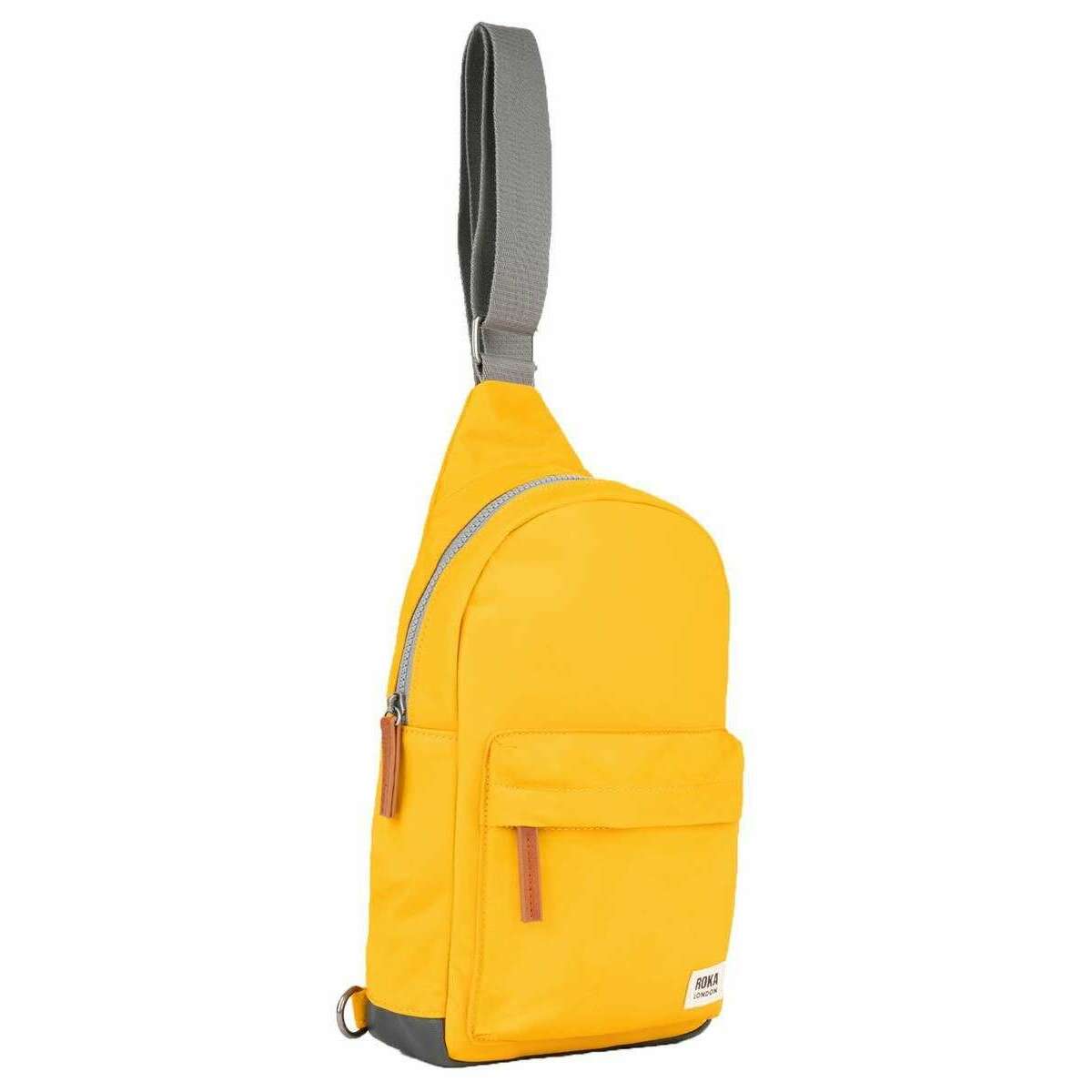 Manufactured from 100% weather-resistant recycled nylon is this saffron yellow unisex willesden b large recycled nylon scooter bag by the designer Roka. It measures 34cm(height) x 19cm(width) x 7cm(depth). All the bags come complete with roka packaging. The Roka Willesden B Large Recycled Nylon Scooter Bag - Saffron Yellow is the perfect cross body bag, well suited for a busy person on the go. Commuting, studying, gym or a well needed trip, this bag features an organisational panel on the inside and a front zip pocket on the outside, perfect for keeping organised on the move. This durable scooter bag also features a secret pocket on the back, which secures your valuables allowing you to be worry free and hands free on the go. Straps become softer and more comfortable with each use and can be clipped to the left or right. Crafted from rPet recycled material it is environmentally friendly, water-resistant, durable and completely vegan.