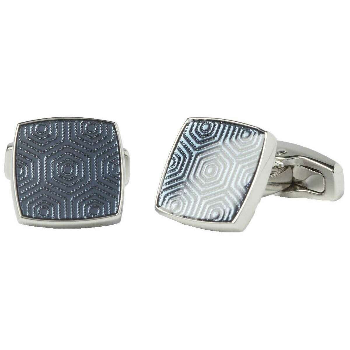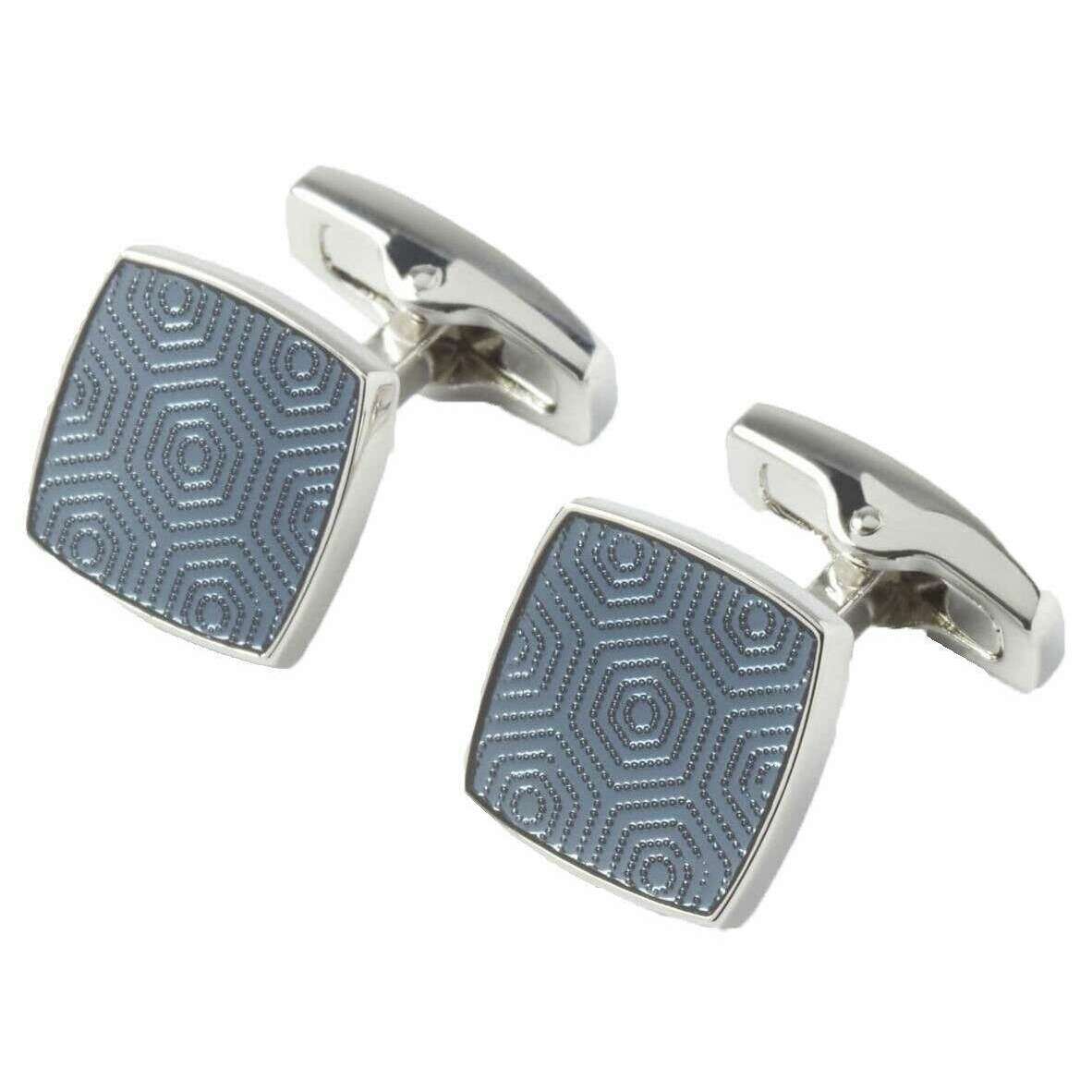 These men's adagio cufflinks by the brand Simon Carter are made from rhodium plated solid brass coated with enamel resin and are showcased in navy. All the cufflinks come complete with a simon carter presentation box. The Simon Carter Adagio Cufflinks - Navy are a beautiful simple pair of cufflinks with a slight twist great for everyday office wear. This geometric design is done using a guilloche pattern giving a stylish and sophisticated feel. Coated with enamel resin gives this pair it’s polished finish.