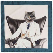 Simon Carter Evil Cat Pocket Square - Blue/White
