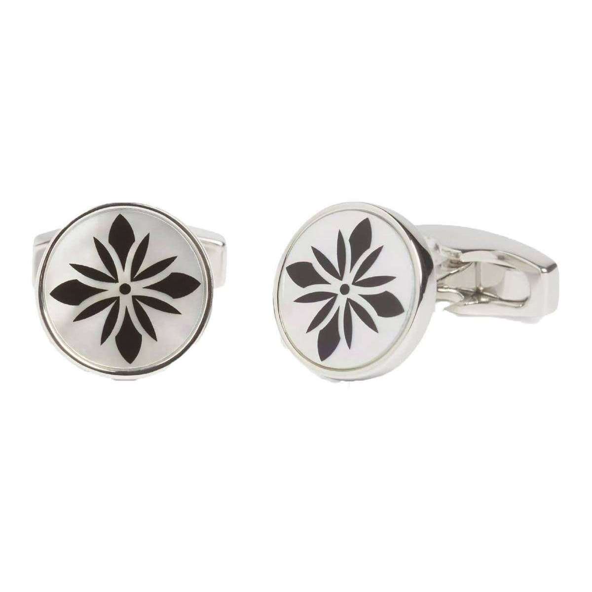 Simon Carter Flower Print Mother of Pearl Cufflinks - Silver/White/Black