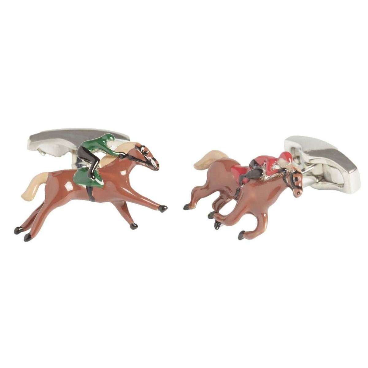 Simon Carter Horse Racing Cufflinks - Silver/Brown