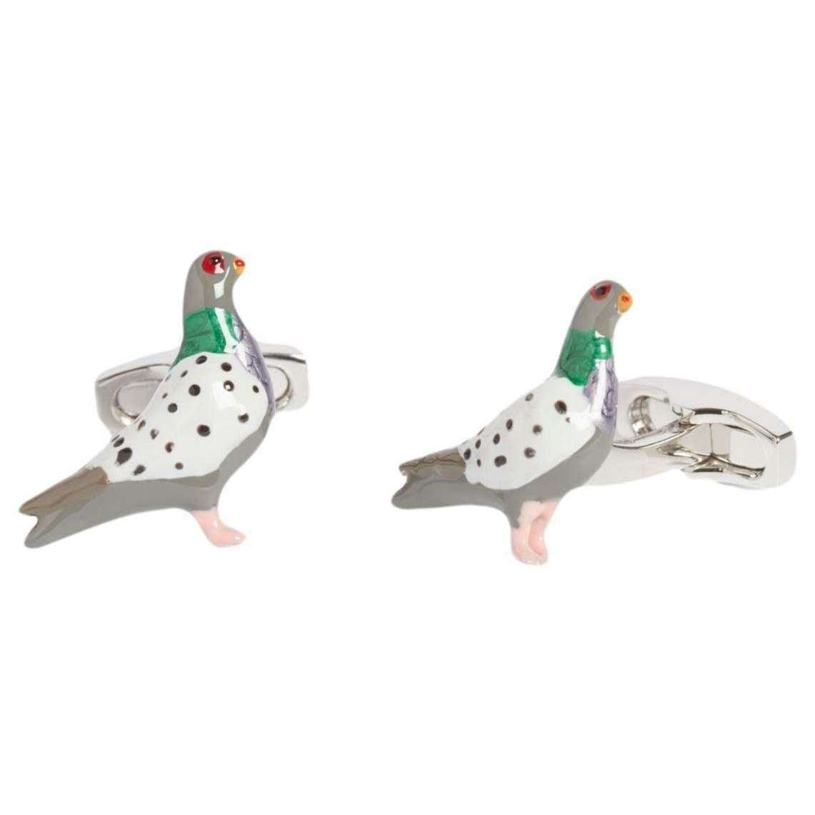 Simon Carter London Enamel Pigeon Cufflinks - Silver/Green