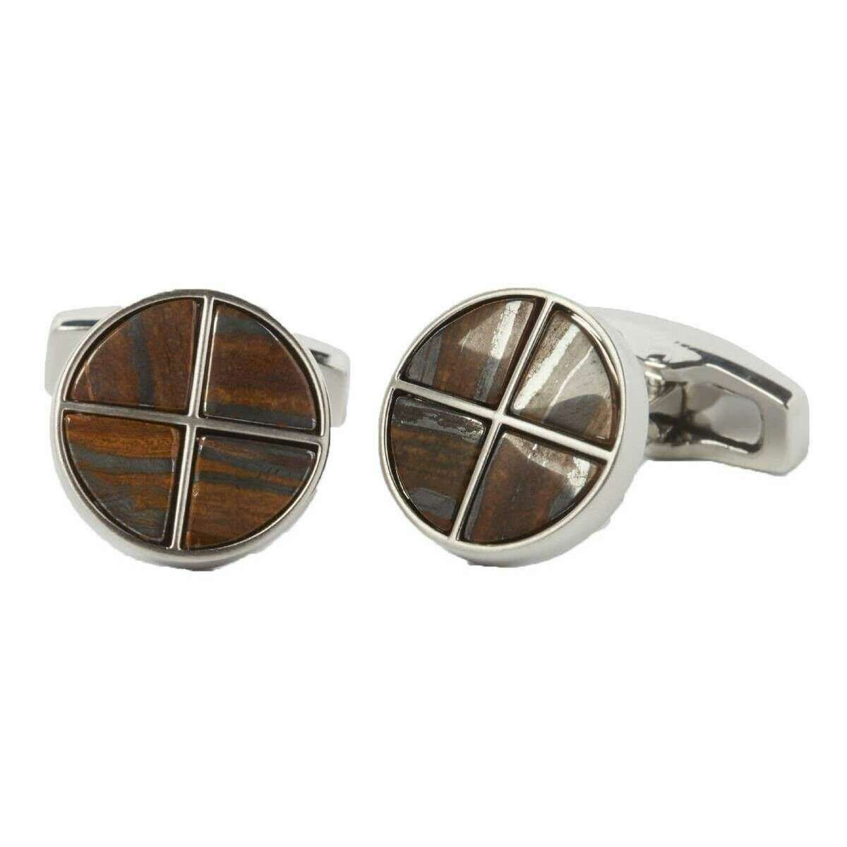 Simon Carter Quadrant Tiger Iron Polished Cufflinks - Brown/Silver