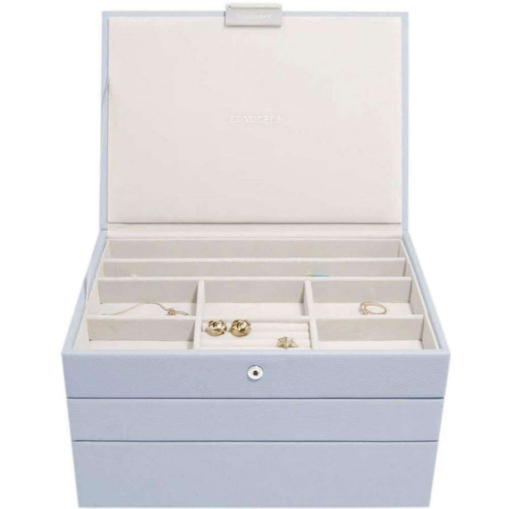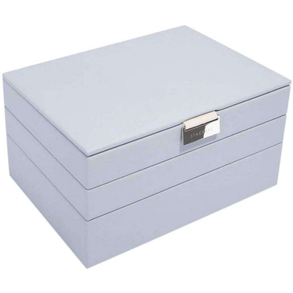 Using lilac faux leather and velvet, this classic jewellery box by Stackers is perfect for women and a must have. It measures 25cm(length) x 18cm(width) x 13.7cm(depth). All the jewellery boxes come complete with stackers packaging. The Stackers Classic Jewellery Box - Lavender is a dream come true for stylish women who love to accessorise thanks to the multi-layer design that has space for all types of accessories! Crafted from excellent quality materials, this box includes the jewellery box lid, trinket layer and watch/accessories layer and layers can be added or rearranged as you wish. A modern organiser that is practical as well as elegant.