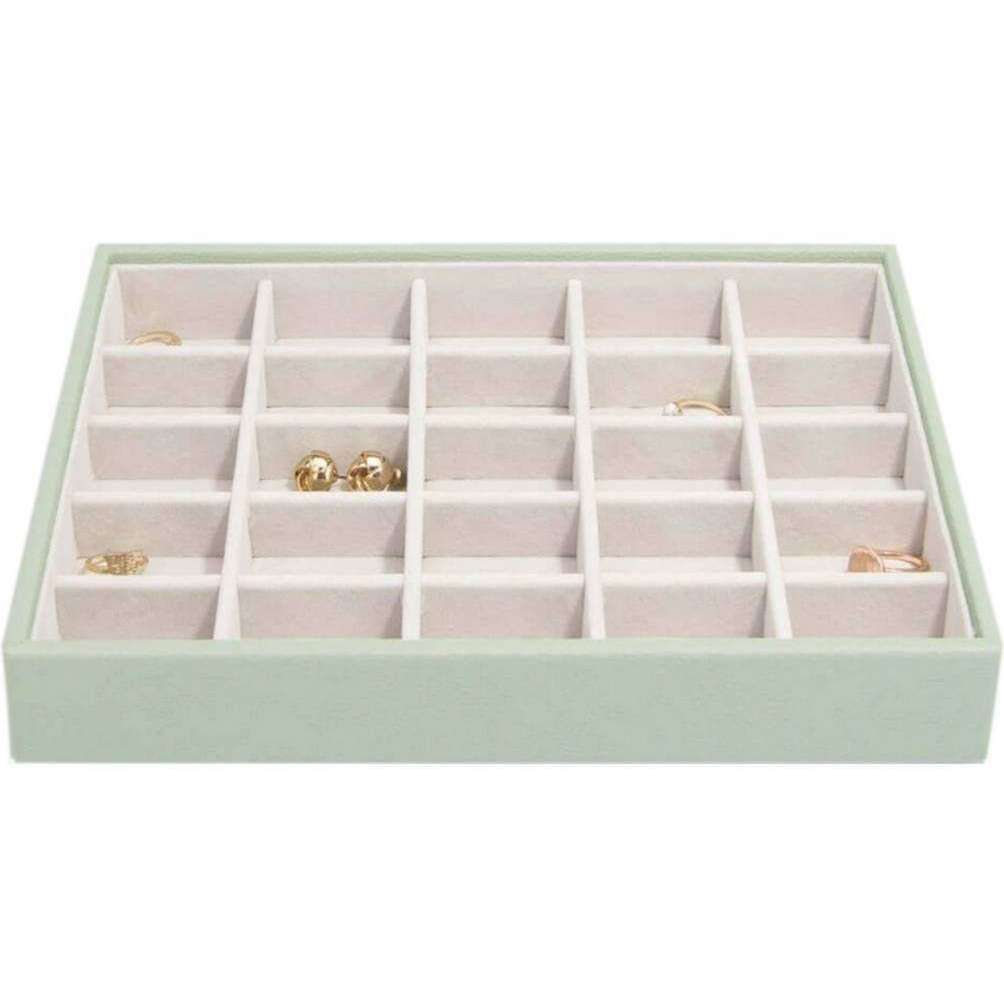 This women's classic trinket tray has been made from faux leather and velvet, featured in a green colour and is from the brand Stackers. It measures 25cm(length) x 18cm(width) x 3.7cm(depth). All the jewellery boxes come complete with stackers packaging. The Stackers Classic Trinket Tray - Sage Green is a versatile item that can be stacked with other layers from the stackers collection to create your own custom jewellery box suitable for your needs. Alternatively, it can be used alone to organise your rings, charms and other small accessories. Professionally made with high quality materials, this lovely layer would be perfect for those who love to accessorise.