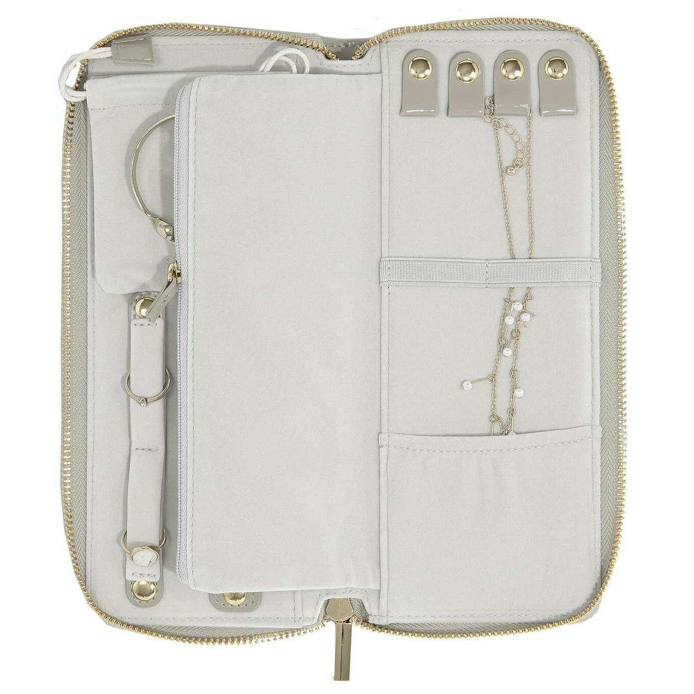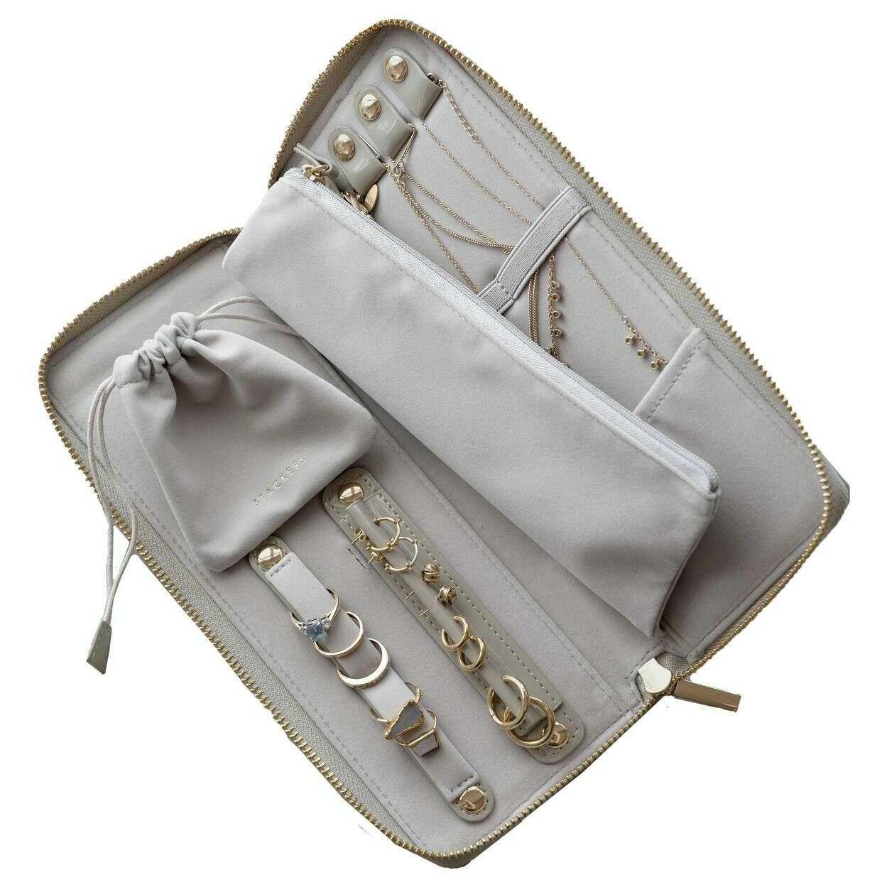 Introducing this women's jewellery roll by Stackers, it is manufactured from faux leather in a patent putty grey colour. It measures 3cm(height) x 24.5cm(width) x 10.3cm(depth). All the jewellery boxes come complete with stackers packaging. The Stackers Jewellery Roll - Patent Putty Grey is a must have when on the go! This grey jewellery roll is perfect for travelling with jewellery and includes a zip closure for extra security.