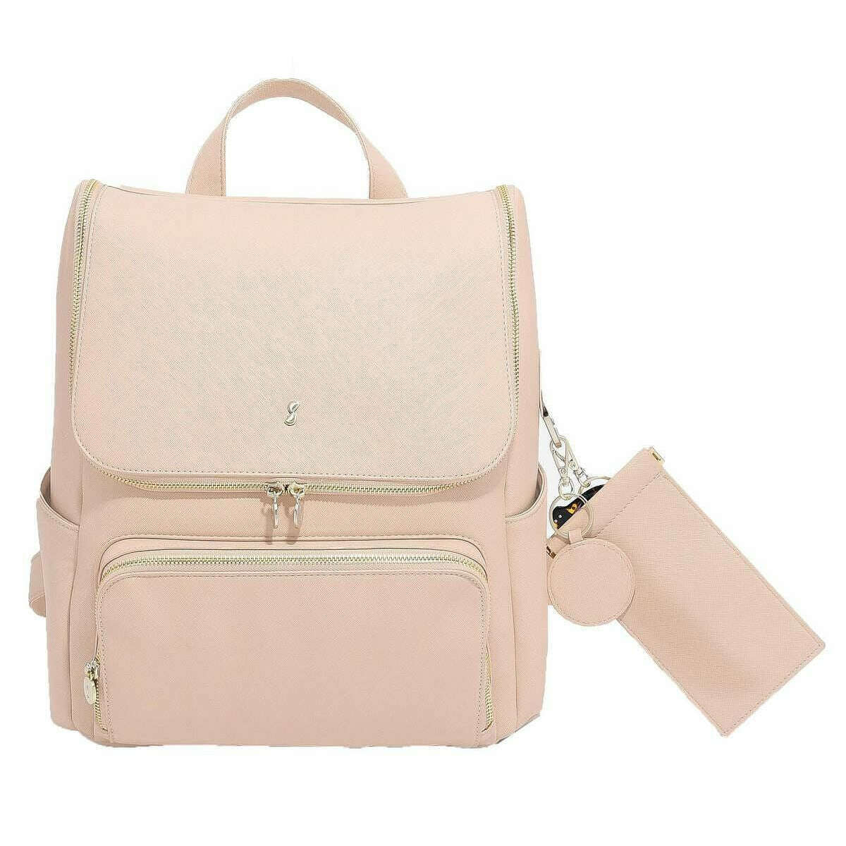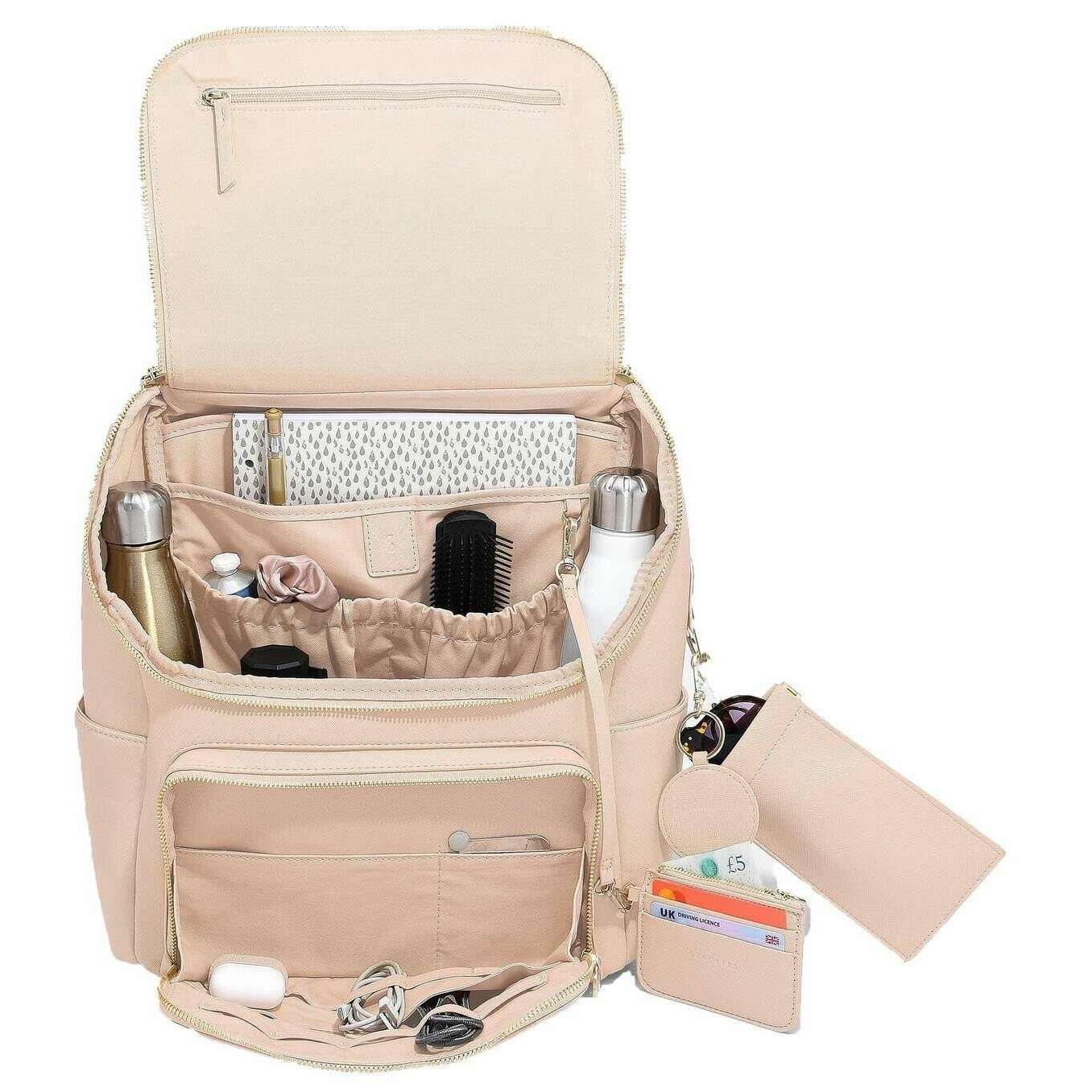 Brought to you by the brand Stackers, this blush pink/gold women's luxury backpack is made from recycled pu. It measures 35cm(height) x 31cm(width) x 15.7cm(depth). All the bags come complete with stackers packaging. The Stackers Luxury Backpack - Blush Pink/Gold is perfect for everyday use. This pink backpack features a laptop pocket, multiple compartments and a range of smaller pockets. Complete with adjustable backpack straps and a zip for added security.