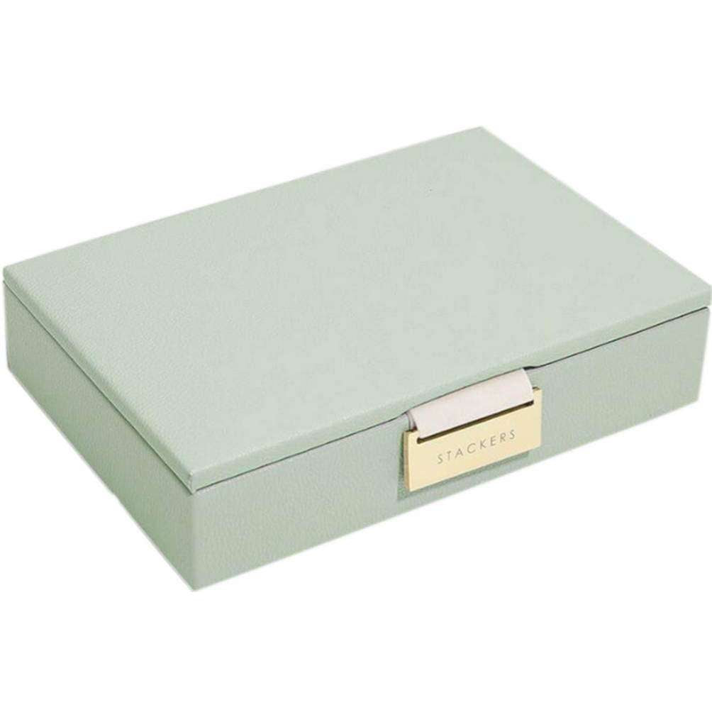 Designer Stackers has brought you this women's faux leather and velvet jewellery box using sage green tones. It measures 18cm(length) x 12.5cm(width) x 4.5cm(depth). All the jewellery boxes come complete with stackers packaging. The Stackers Mini Jewellery Box Lid - Sage Green can be effortlessly stacked with other pieces from the stackers mini collection to create a custom jewellery box suitable for your needs. Alternatively, it works as a stand-alone jewellery box and the mini size is perfect for storing your essential everyday jewellery. Crafted with high quality materials, this beautiful box looks elegant and classic and is an essential for women who love to accessorise.