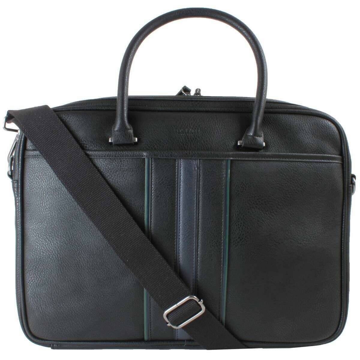 This kenriik striped document bag for men is fashioned by the brand Ted Baker in a black colour and is made from 100% polyurethane. It measures 33cm(height) x 42cm(width) x 7cm(depth). It is recommended to do not wash or tumble dry and do not use anything with bleach, oil or alcohol to keep this bag in good condition. All the bags come complete with ted baker packaging. The Ted Baker Kenriik Striped Document Bag - Black is the ideal piece if you carry a laptop on a day-to-day basis. Its stylish design ensures you look the part as well as providing safe and secure storge for your possessions. Inside is a compartment perfect to store a small laptop or tablet with a tab to keep it from falling out. It also has other compartments for folders or other documents and a sleeve to slide onto your suitcase so this is a must have if you are a worker looking to travel smart and stylish. It has 2 carry handles as well as an adjustable shoulder strap that can be attached as and when you need it. Finished with Ted Baker branding this is an essential buy.