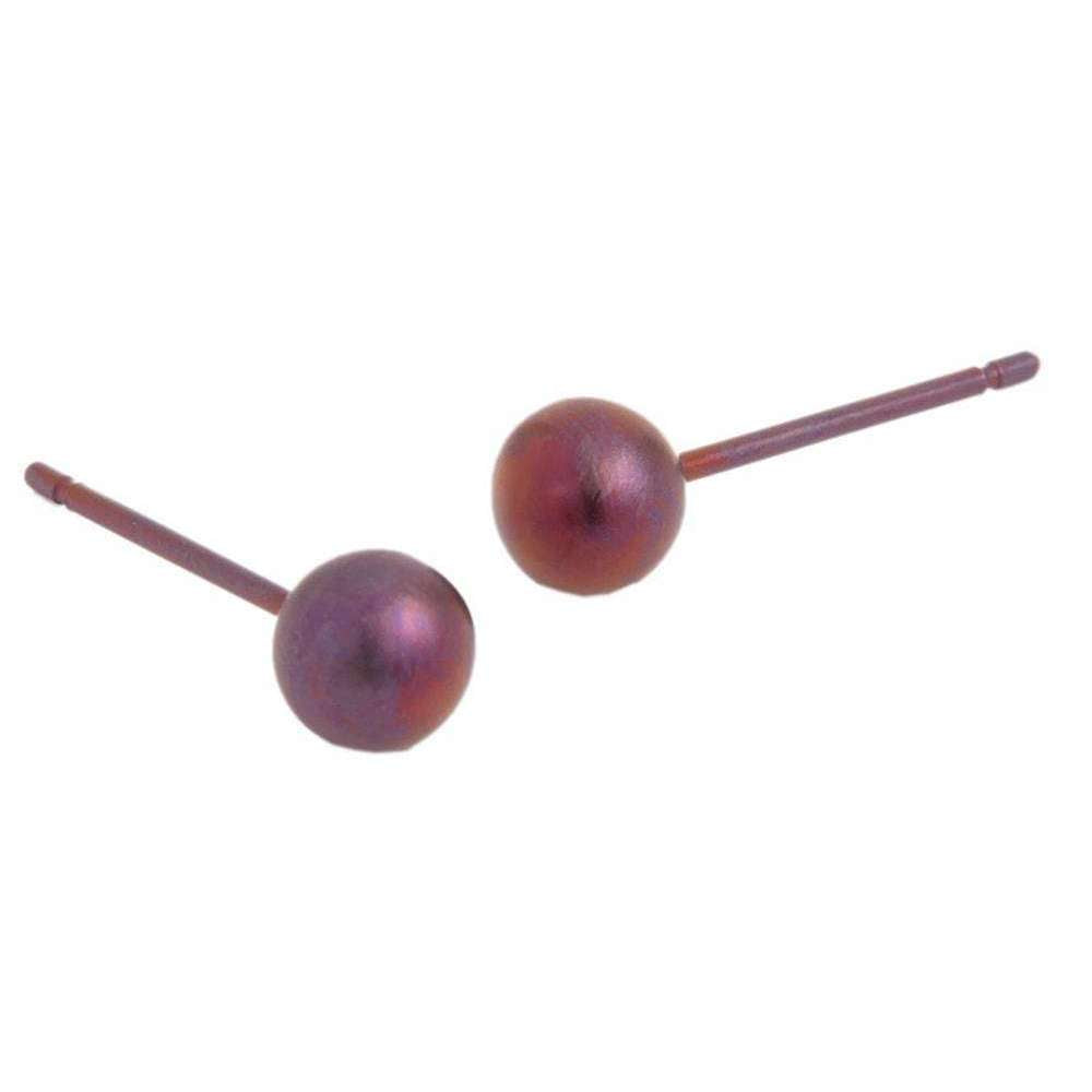 Ti2 Titanium 5mm Round Bead Stud Earrings - Coffee Brown