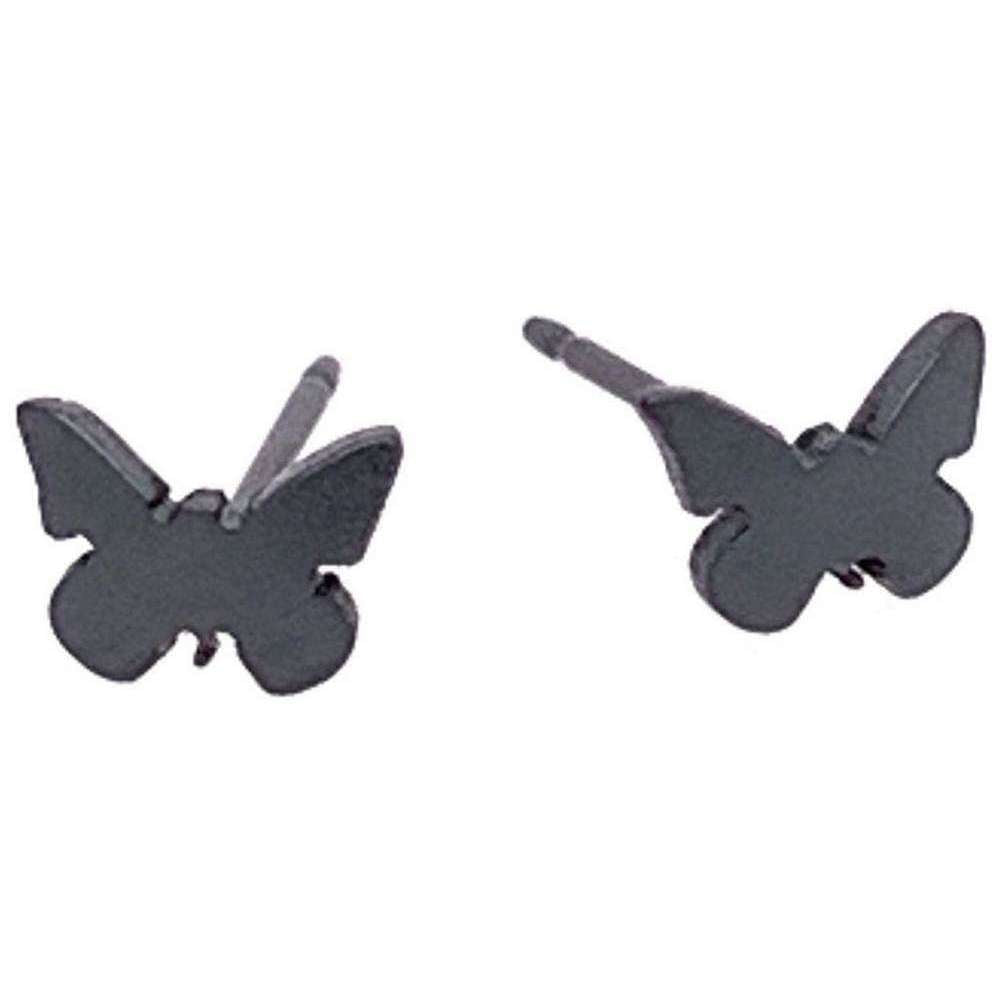 Ti2 Titanium Butterfly Shape 7mm Stud Earrings - Black