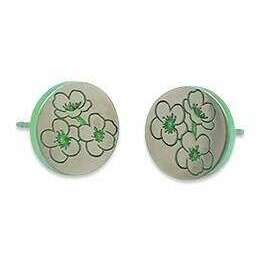 Ti2 Titanium Cherry Blossom Stud Earrings - Green