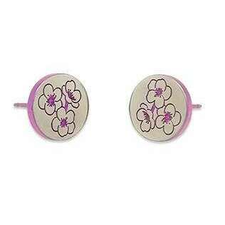 Ti2 Titanium Cherry Blossom Stud Earrings - Pink