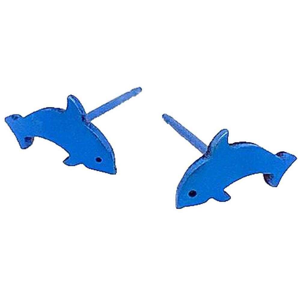 Ti2 Titanium Dolphin Stud Earrings - Dark Blue