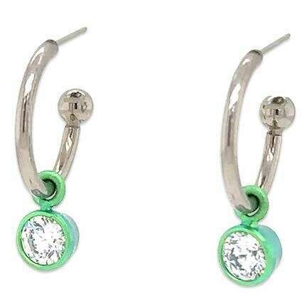 Ti2 Titanium Gem Charm Hoop Earrings - Green