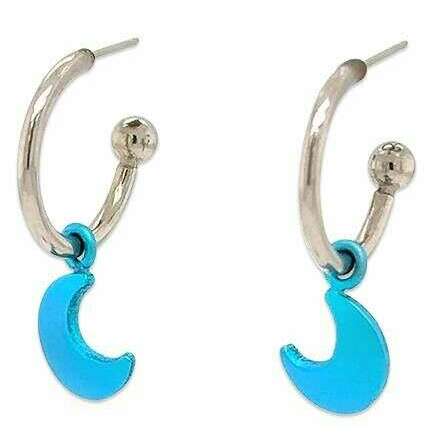 Ti2 Titanium Moon Charm Hoop Earrings - Kingfisher Blue