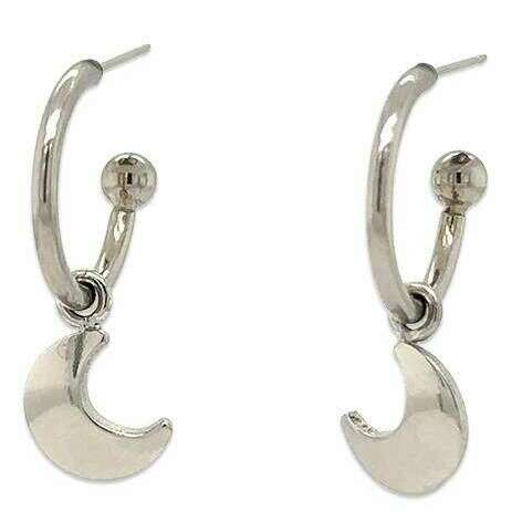 Ti2 Titanium Moon Charm Hoop Earrings - Natural Polished Silver