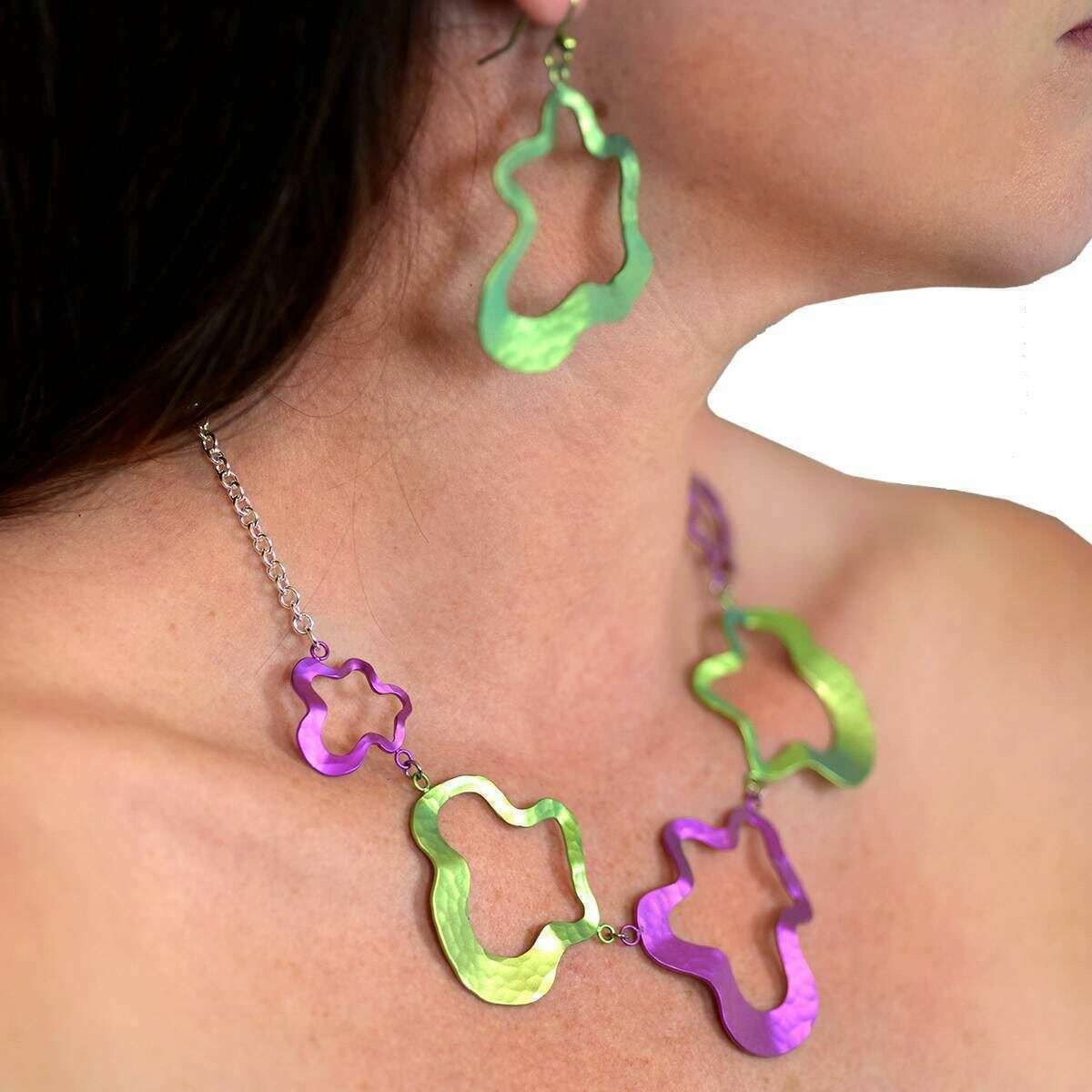 Ti2 Titanium Multi Splat Necklace - Green/Pink