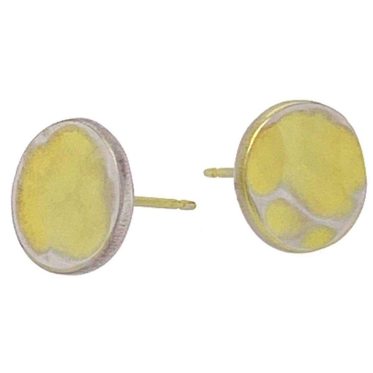 Ti2 Titanium Planished 9mm Stud Earrings - Lemon Yellow