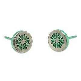 Ti2 Titanium Small Floral Stud Earrings - Green