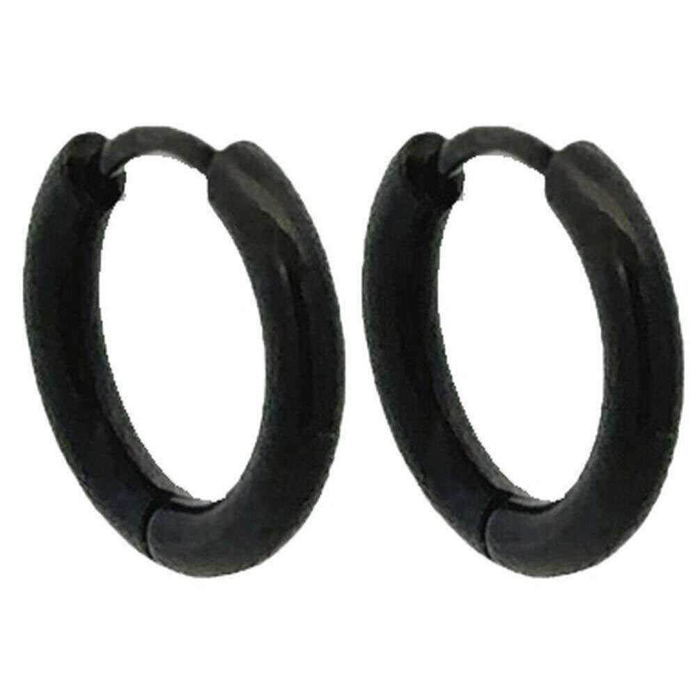 Ti2 Titanium Small Round Hinged Hoop Earrings - Black