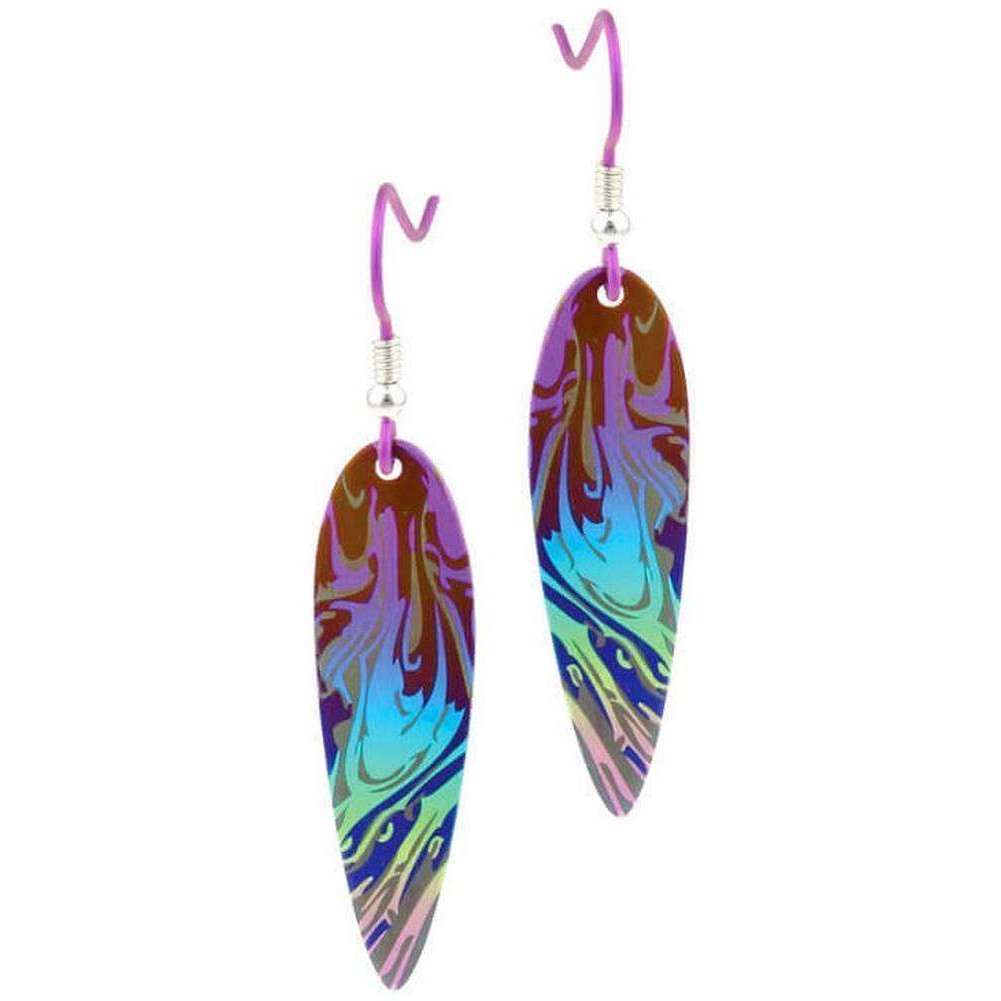 Ti2 Titanium Swirl Pattern Drop Earrings - Rainbow