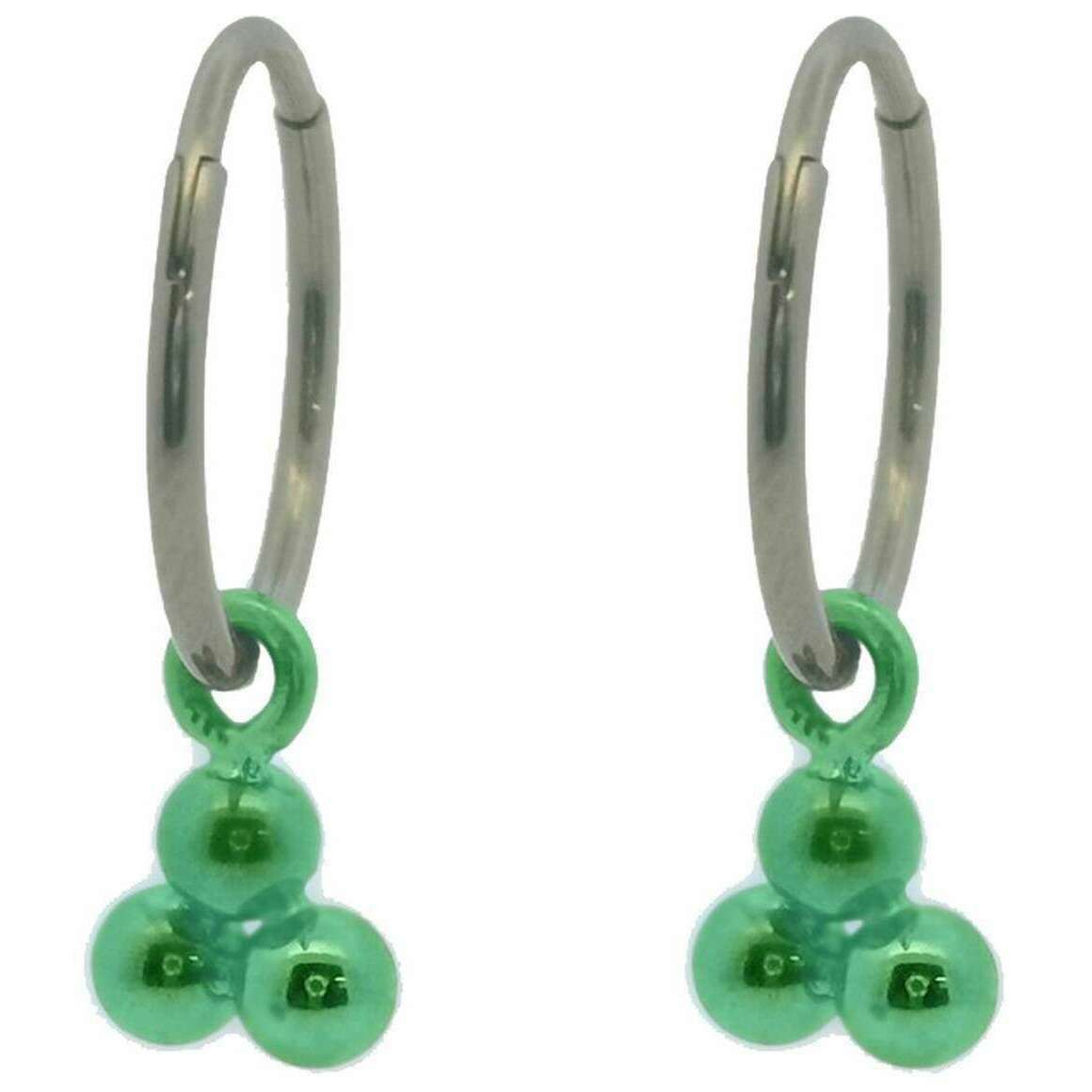 Ti2 Titanium Triple Bead Charm Hoop Earrings - Green
