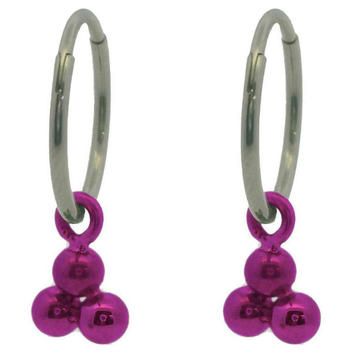Ti2 Titanium Triple Bead Charm Hoop Earrings - Pink